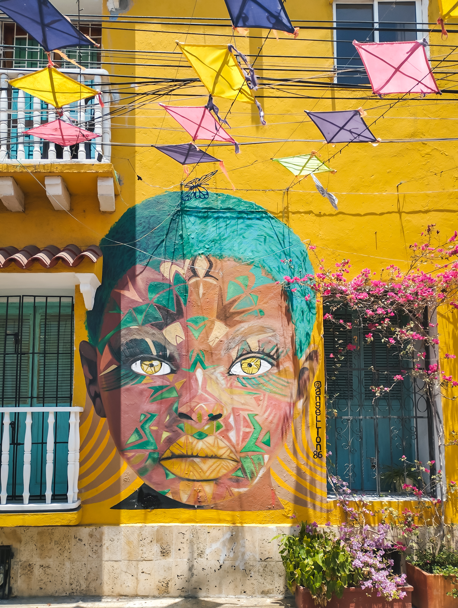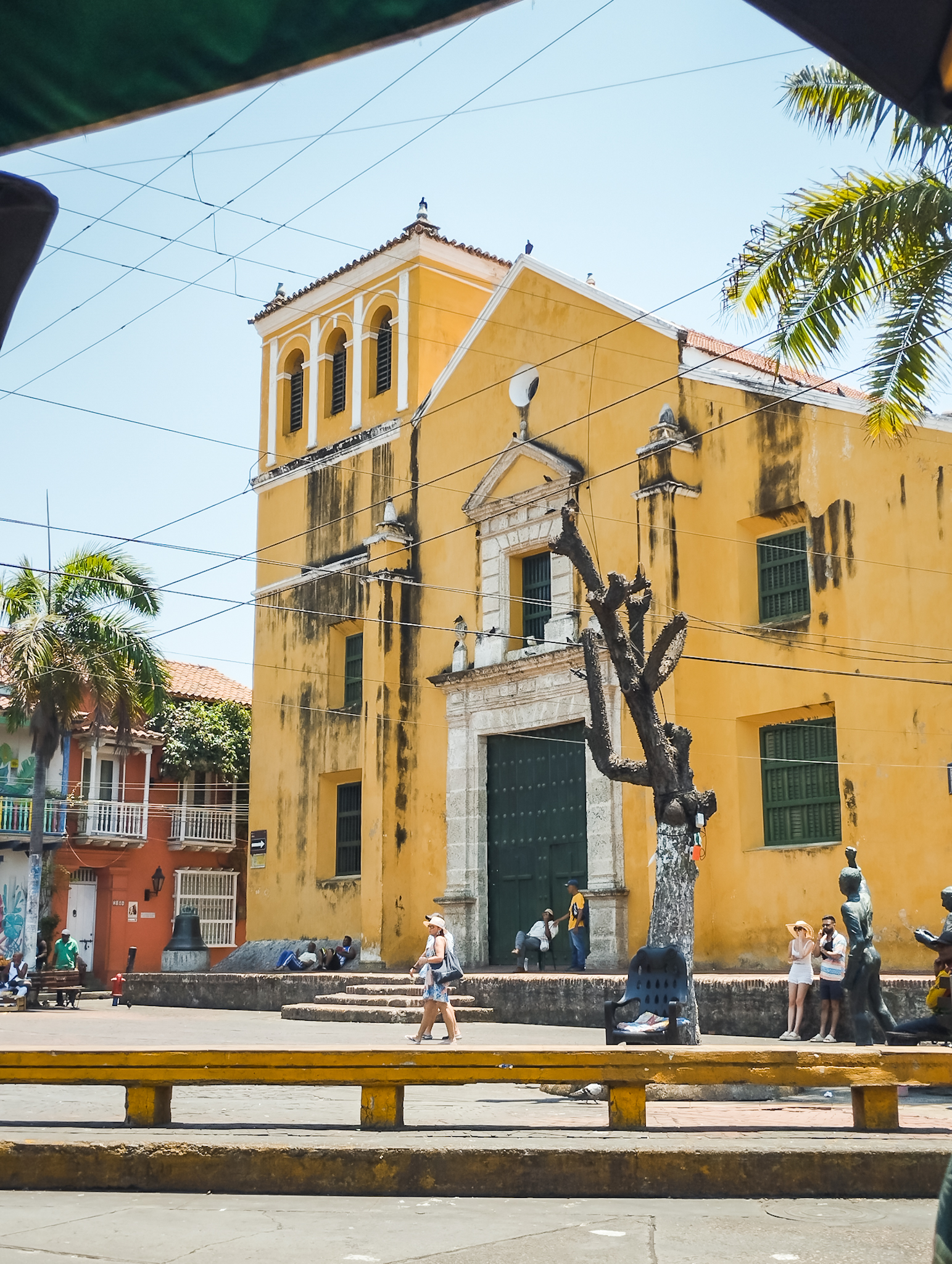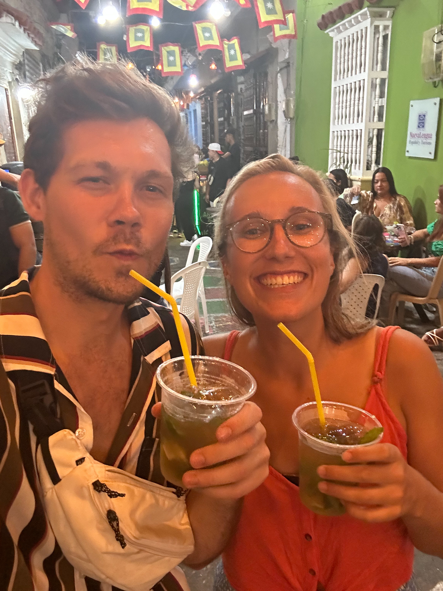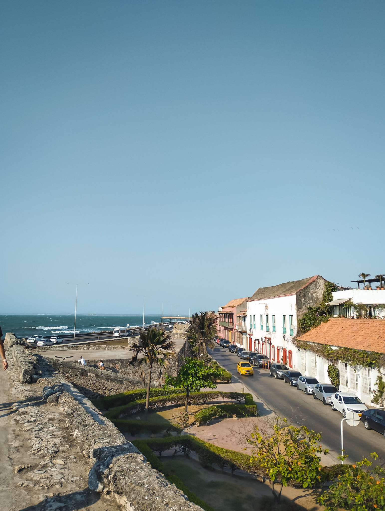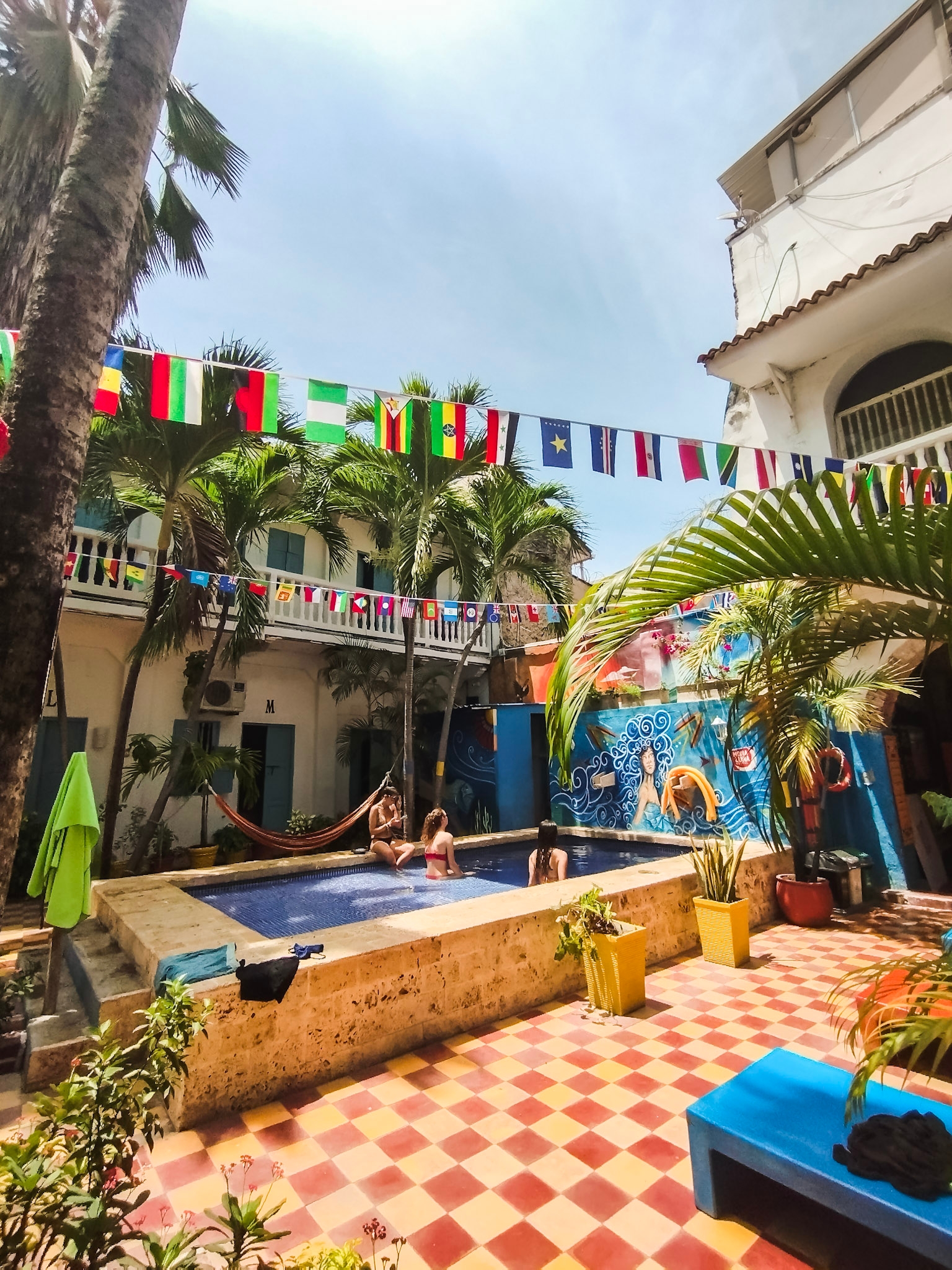 On quitte le bateau à 4 avec Jeanne du Canada et Inès, française et on dépose nos affaires dans l’auberge. On a le mal de terre, on est pas en grande forme. Notre auberge est située dans le quartier Getsamini, anciennement dangereux, rempli de drogues et de prostituées mais aujourd’hui c’est un quartier safe, connu pour son street art et ses artistes. On en fait vite le tour avant de marcher jusqu’au quartier historique de Cartagena. C’est touristique mais c’est magnifique. Les façades colorées, les balcons fleuris, les palenques (femmes habillés traditionnellement qui vendent des fruits mais posent surtout pour les photos) nous en mettent plein les yeux. On goûte à nos premières arepas en Colombie (mais on trouvera meilleur plus tard). On marche jusqu’aux remparts de la ville et puis on s’offre une glace pour trois fois rien (alors que l’endroit semble bien luxe). De retour à l’auberge pour le check in, on passe le reste de l’aprem au frais dans la piscine (il fait beau mais qu’est-ce qu’il fait chaud!).