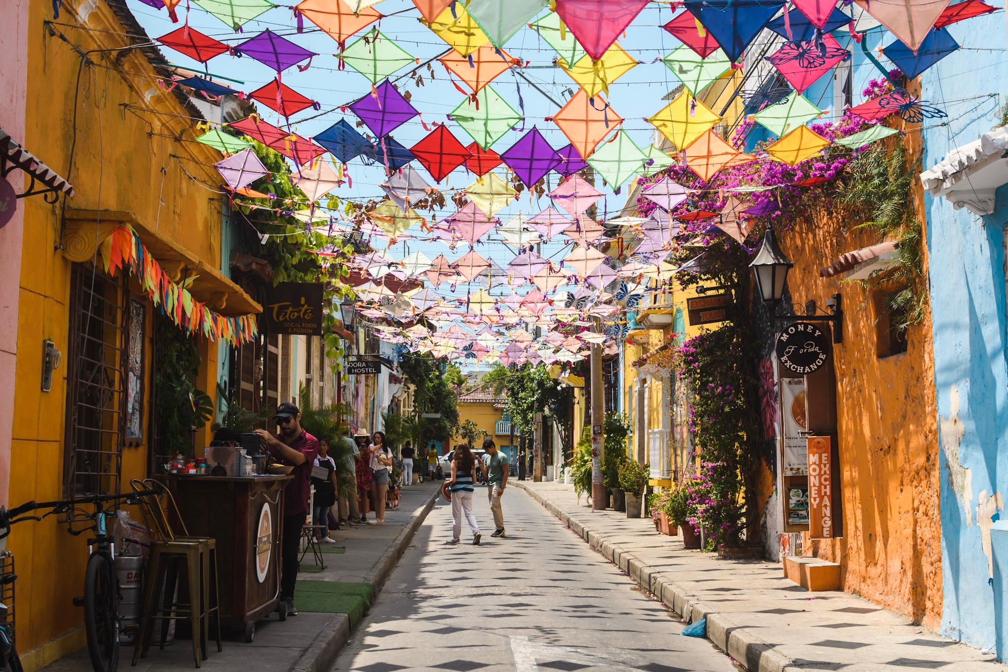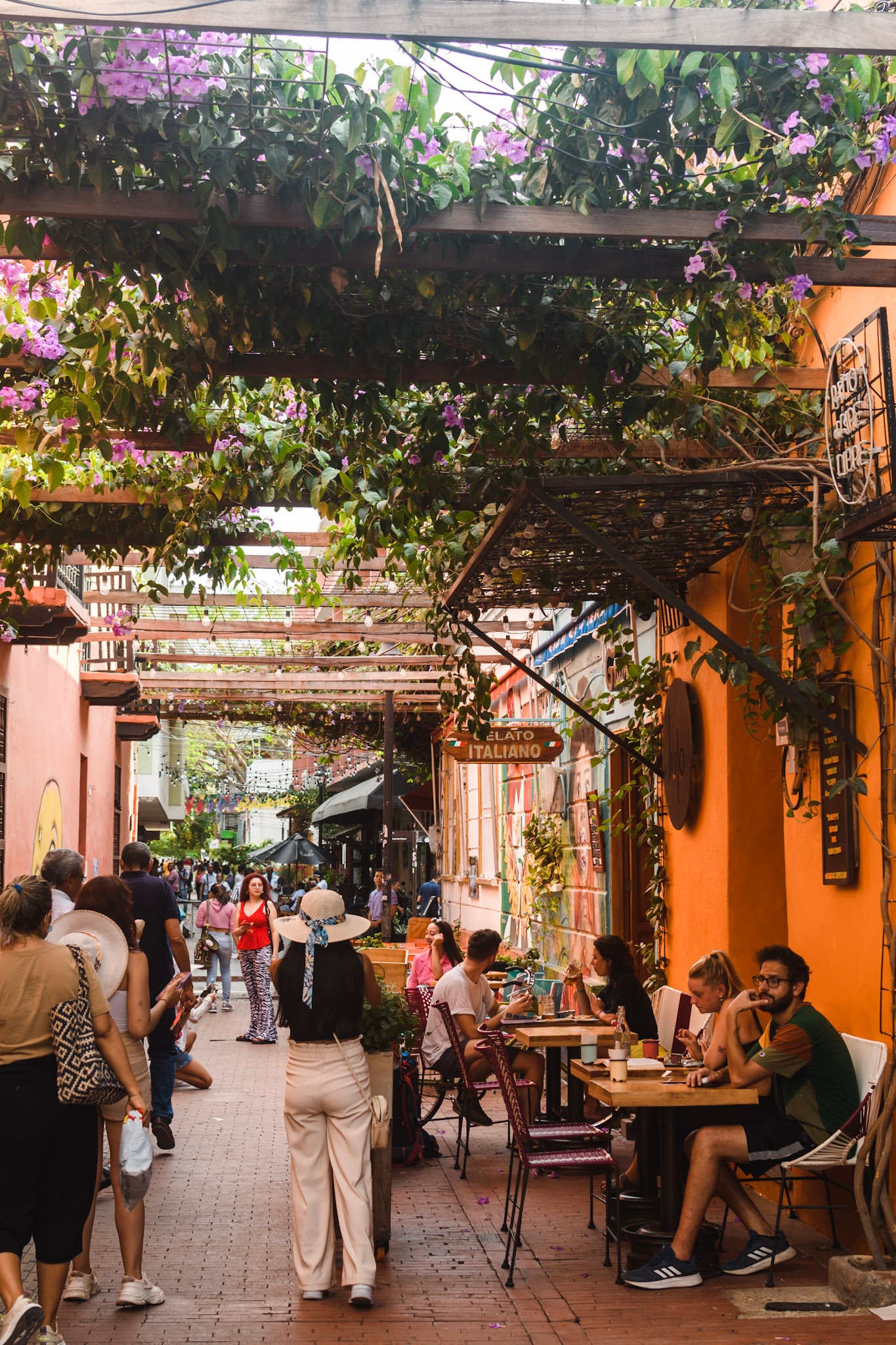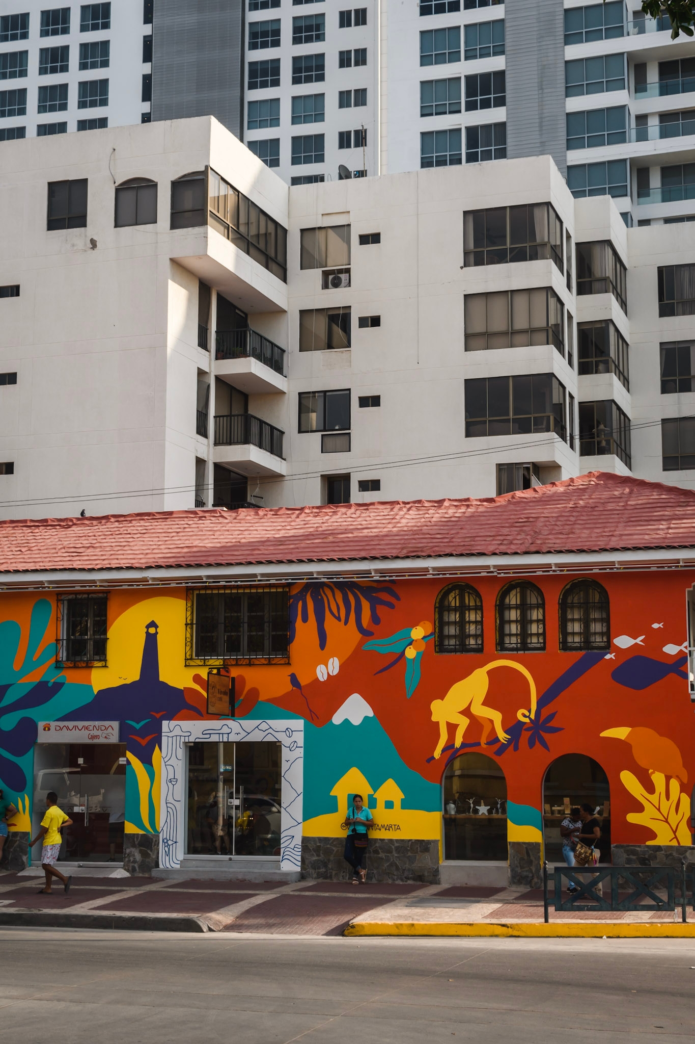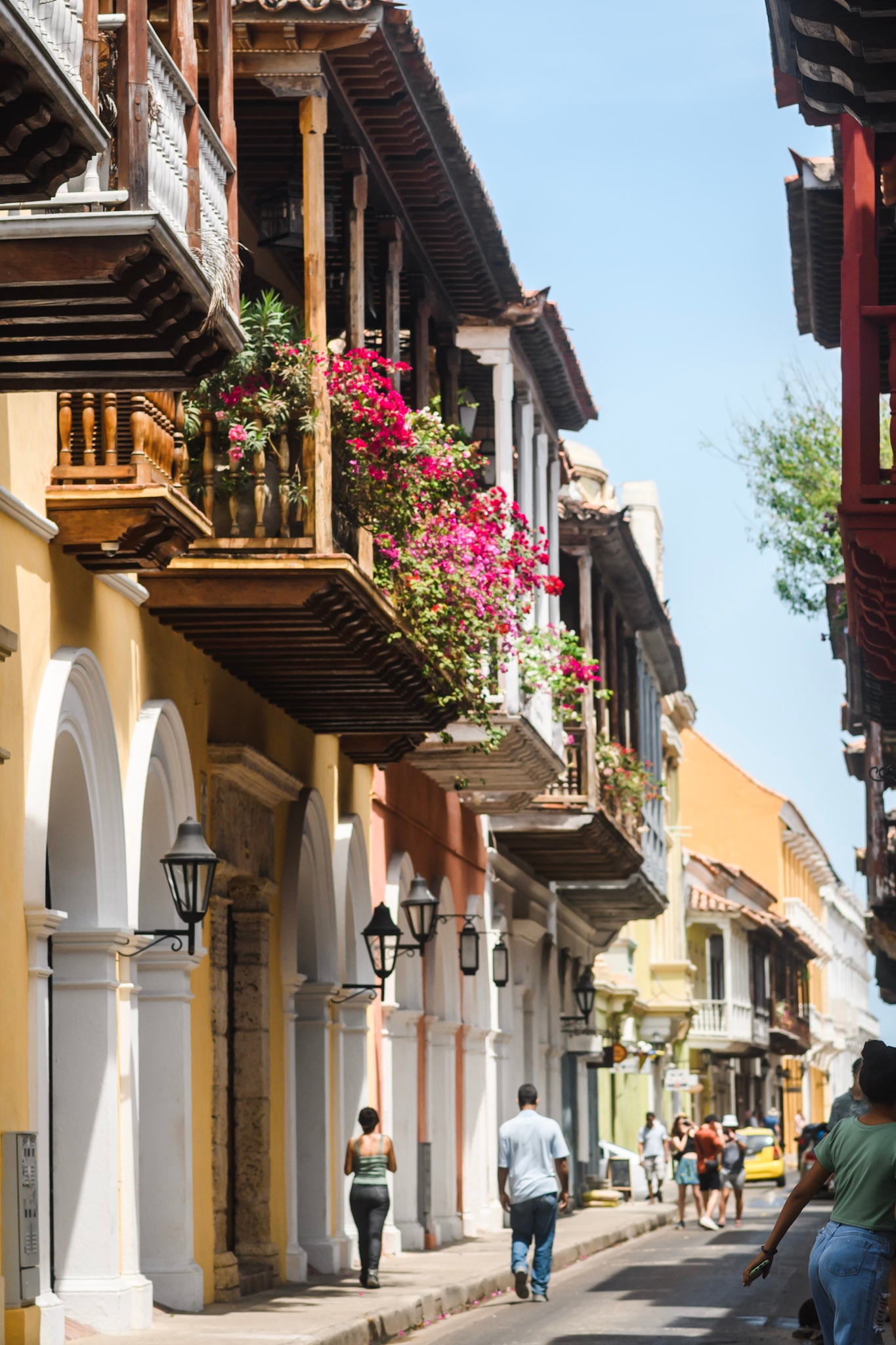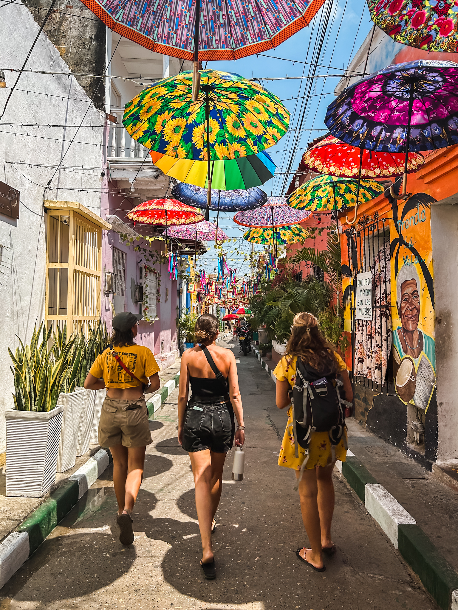 On quitte le bateau à 4 avec Jeanne du Canada et Inès, française et on dépose nos affaires dans l’auberge. On a le mal de terre, on est pas en grande forme. Notre auberge est située dans le quartier Getsamini, anciennement dangereux, rempli de drogues et de prostituées mais aujourd’hui c’est un quartier safe, connu pour son street art et ses artistes. On en fait vite le tour avant de marcher jusqu’au quartier historique de Cartagena. C’est touristique mais c’est magnifique. Les façades colorées, les balcons fleuris, les palenques (femmes habillés traditionnellement qui vendent des fruits mais posent surtout pour les photos) nous en mettent plein les yeux. On goûte à nos premières arepas en Colombie (mais on trouvera meilleur plus tard). On marche jusqu’aux remparts de la ville et puis on s’offre une glace pour trois fois rien (alors que l’endroit semble bien luxe). De retour à l’auberge pour le check in, on passe le reste de l’aprem au frais dans la piscine (il fait beau mais qu’est-ce qu’il fait chaud!).