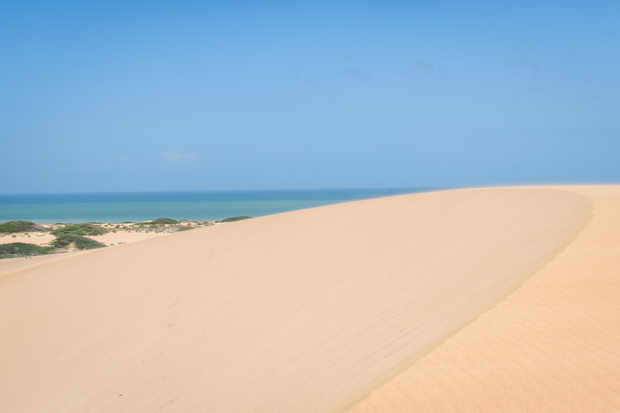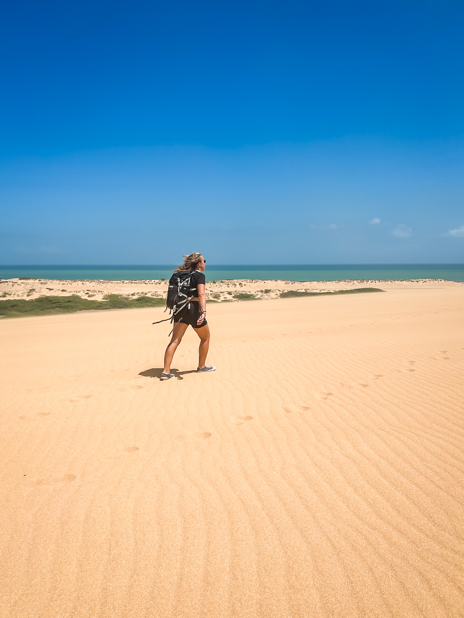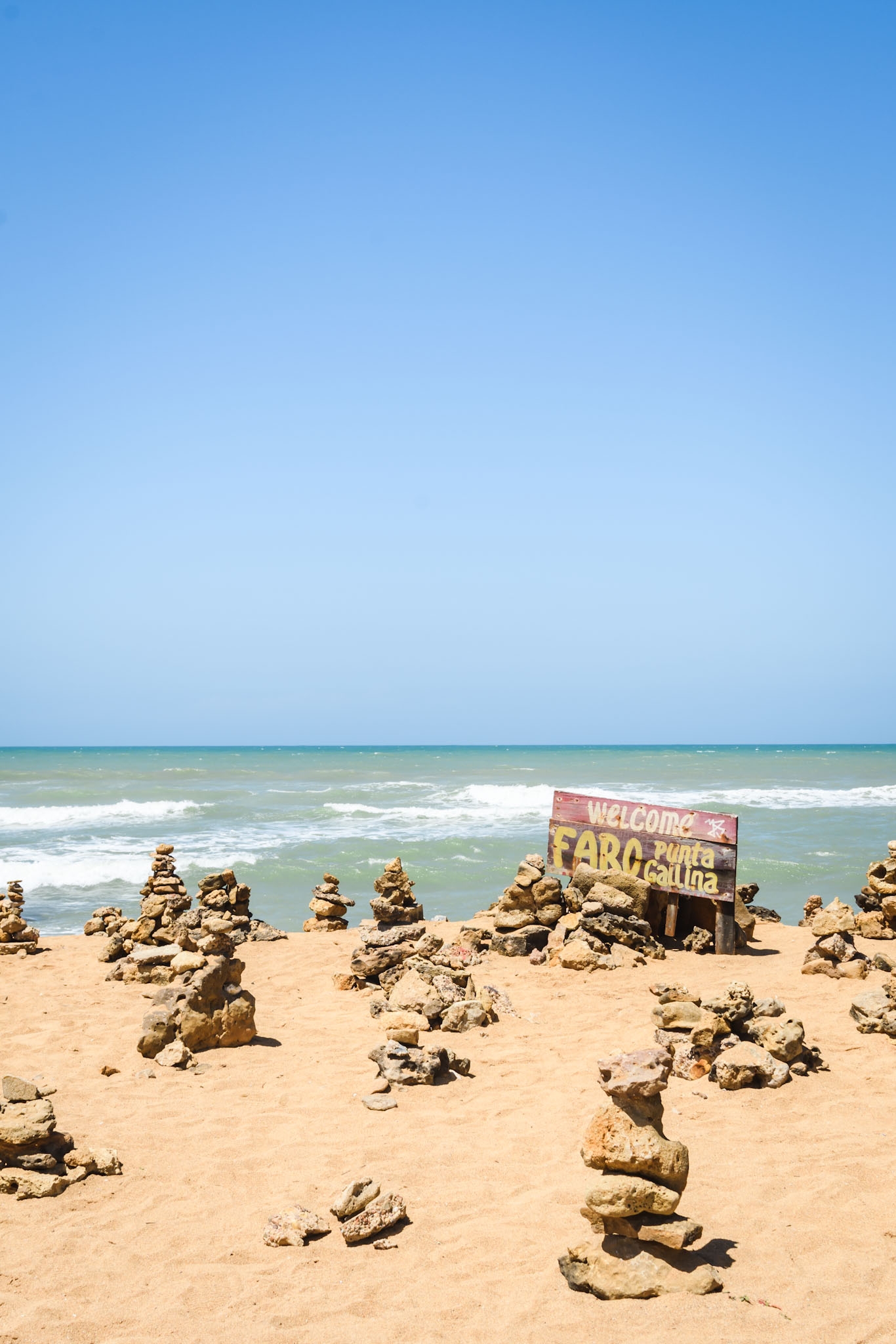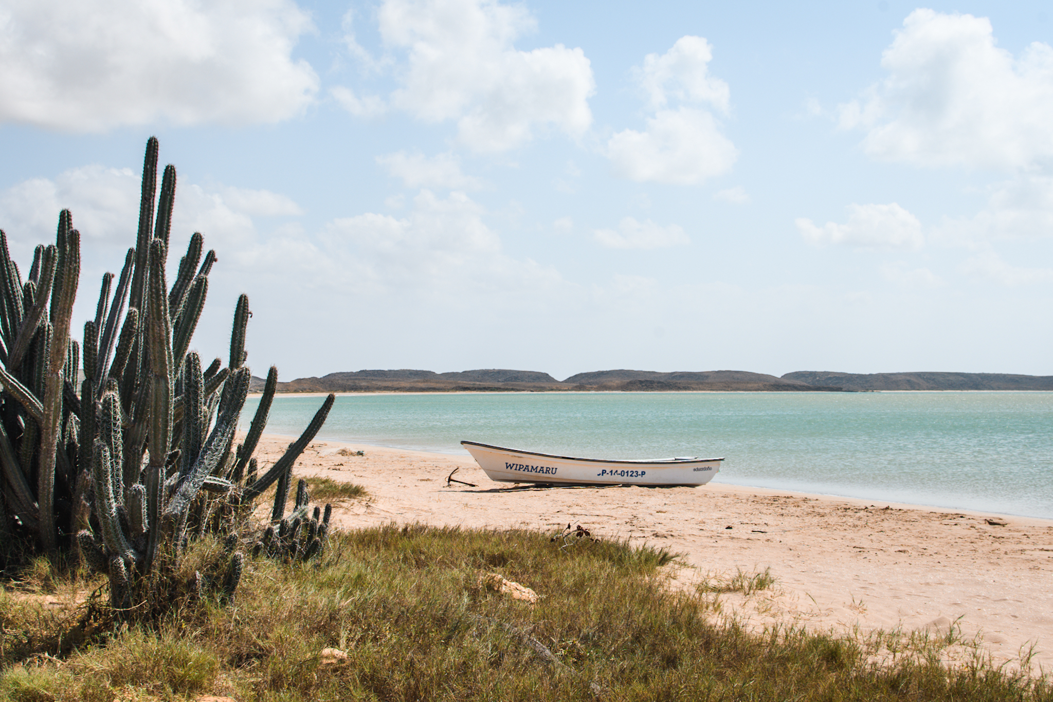 Vendredi, à 7h30, Marcello, notre guide/chauffeur vient nous chercher en jeep. On est parti pour quelques heures de route, direction la région de la Guajira. Connue pour son désert, la Guajira occupe tout le nord est de la Colombie jusqu’au Venezuela. C’est une région peu touristique car difficile d’accès mais aussi très pauvre. Il est recommandé d’y aller avec un tour car les routes sont très mauvaises, enfin à la fin on roule dans les dunes de sable donc il n’y a même plus de route. Mais il y a aussi beaucoup de « péages » sur le chemin. La population locale n’ayant pas de moyen, et n’étant pas aidée par le gouvernement, a instauré des blocages sur la route. Certains sont plus imposants et pour passer il faut payer ou donner à manger (café, eau, biscuits, tout est bon). Certains sont plus improvisés: un bout de corde accroché à un arbre et un enfant qui la tient à l’autre bout. On s’arrête la plupart du temps mais parfois notre guide force le passage, l’enfant n’ayant d’autre choix que de lâcher la corde pour ne pas se faire emporter. C’est triste et c’est un spectacle dur à voir (mais les barrages s’enchaînent parfois tout les 10m et on ne sait pas donner à tous).