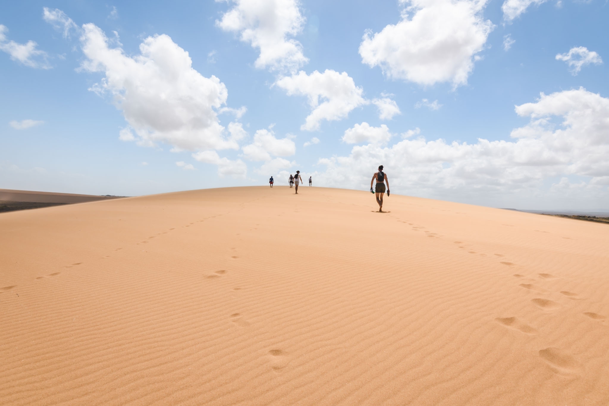 On part ensuite avec Marcello et Peter pour les dunes de Taroa. Après un premier point de vue sur la baie, on y arrive. Ce sont de grandes dunes de sables qui longent la mer. Le paysage est superbe, on en prend plein les yeux. On se baigne avant de rentrer chez Emilio, en passant par la Punta Gallina qui est le point le plus au nord de l’Amérique du Sud.
