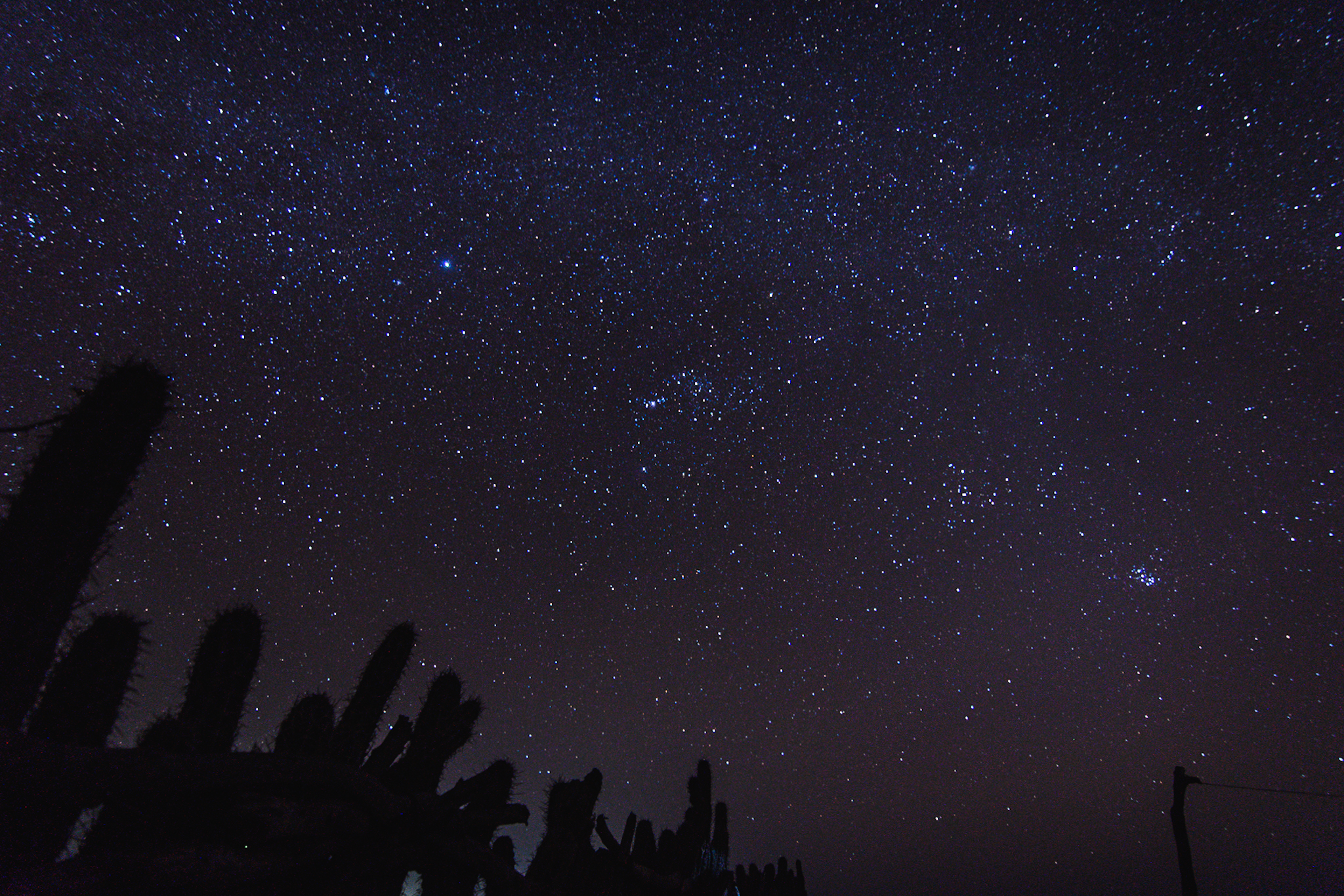 Nous sommes chez les Wayuu. Ici ils croient que la Terre est leur mère et la pluie est leur père. Les deux combinés donnent la vie. Elle nous explique les différents vêtements et que chez eux ils se réjouissent quand une fille nait. En effet, la femme a plus de valeur que l’homme. Elle transmet son nom de famille et les tâches dont elle est responsable sont les plus importantes. C’est pour cela que le prix de la femme pour un mariage est très élevé. Elle nous explique aussi qu’avant, lorsqu’une enfant atteignait la puberté, ils l’enfermaient dans une pièce pendant 4 à 5 ans. Seul sa mère ou sa grand mère lui rendait visite, elle était soumise à un régime strict et devait faire des sacs et des hamacs. À la fin, elle était plongée dans la mer (à 3h du matin, quand il fait froid) pour laver son esprit et qu’elle soit prête à devenir une femme. Aujourd’hui, ils respectent encore cette tradition mais la fille n’est enfermée qu’une semaine ou un mois (si elle va à l’école ou non). Neolia fini ses explications en nous montrant la danse traditionnelle et on est tous invité à essayer avant de passer au souper. Plus tard dans la soirée, je profiterais de l’absence de lumière pour faire des photos d’étoiles. On passe le reste de la soirée à déguster l’alcool local, après tout c’est l’anniversaire de Pierre, le Breton et il faut bien fêter ça.