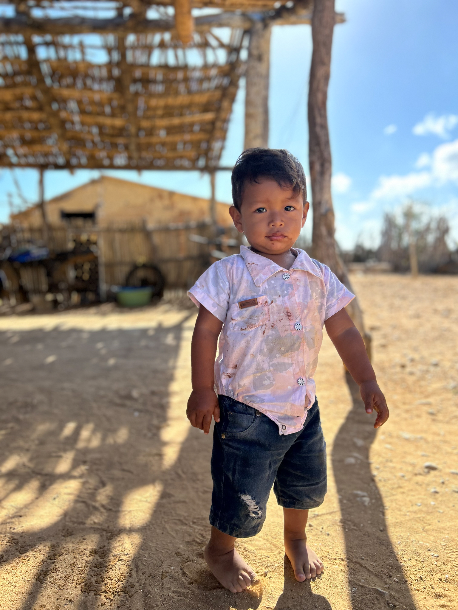 On arrive au coucher du soleil à notre résidence pour les deux prochaines nuits. C’est la famille d’Emilio, le doyen qui nous accueille chez eux. On est directement mis dans le bain, notre première mission est de rassembler les chèvres pour la nuit. Une fois chose faite, on se douche (au seau) et on aide à préparer le souper. Un autres groupe de touriste arrive et la famille nous donne des vêtements traditionnels avant de nous maquiller pour les filles. On se rassemble autour du feu et Neolia (maman d’un petit bout de deux mois, à 17 ans) nous explique la culture locale.