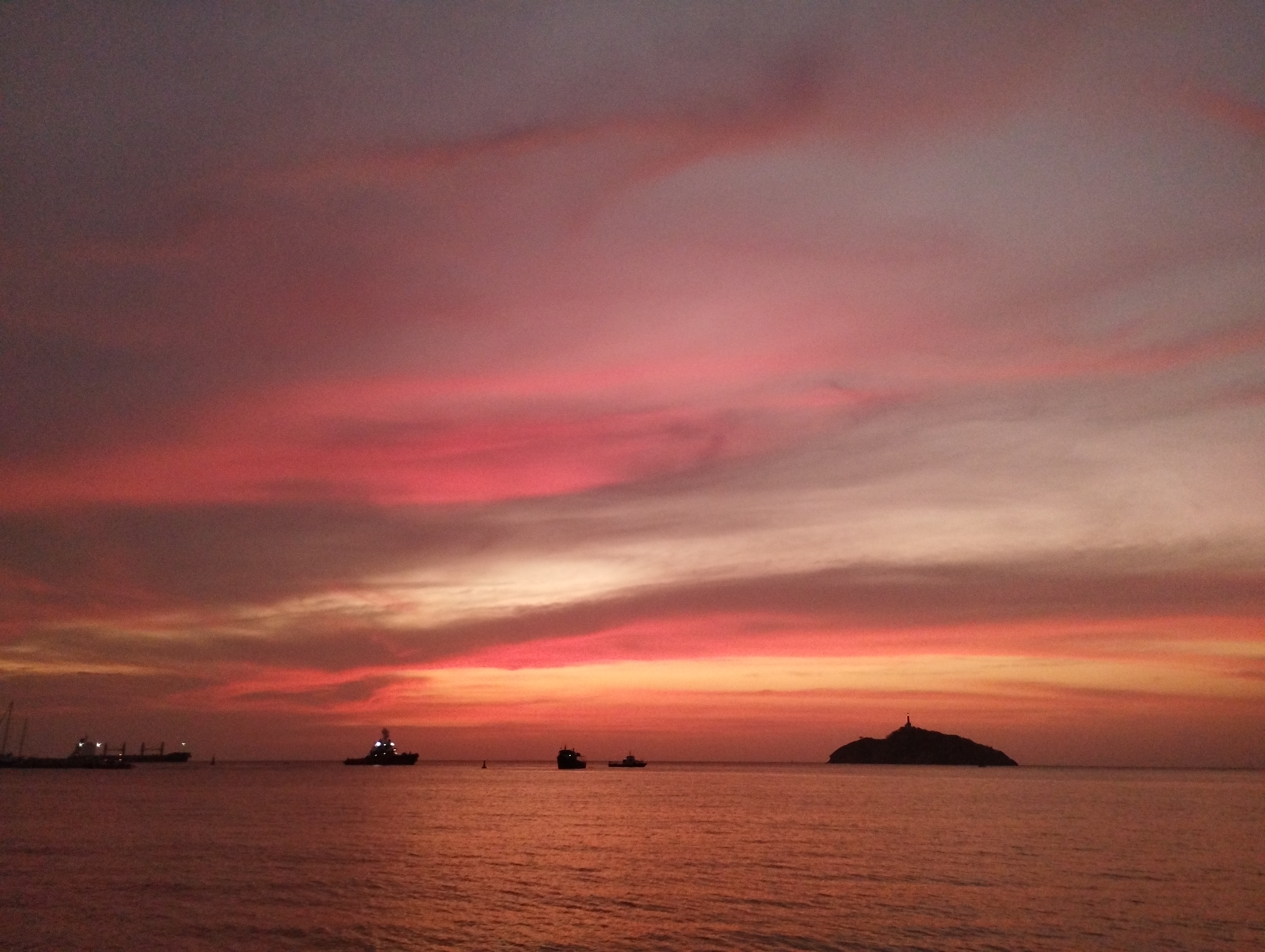 Jeudi en début d’après-midi, on part pour Riohacha d’où démarre notre tour. C’est une petite ville au bord de la mer, où les touristes passent seulement pour aller dans le désert. On a juste le temps de voir le coucher du soleil et de faire quelques courses pour les prochains jours.