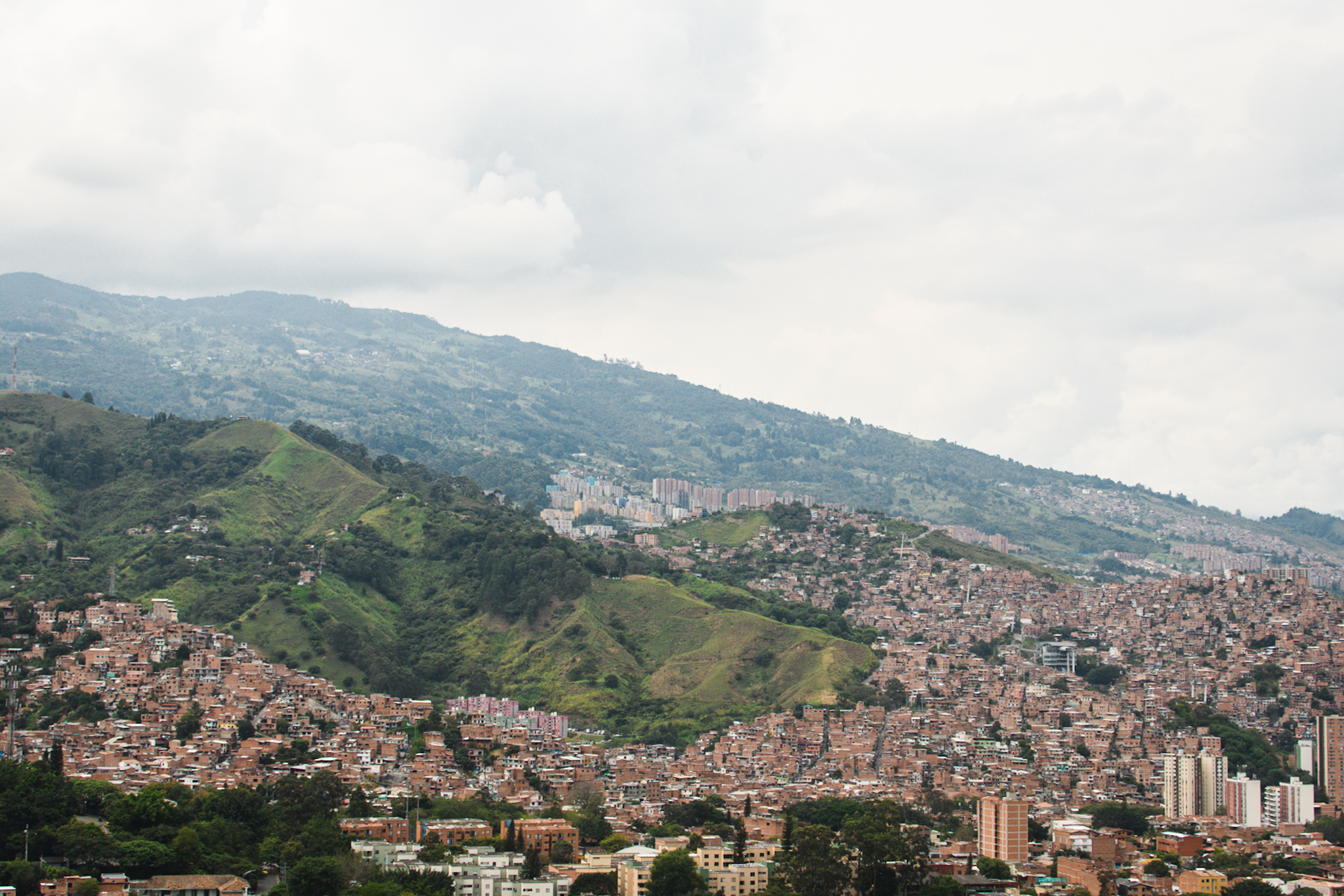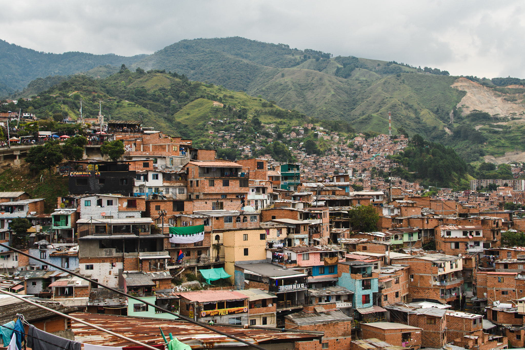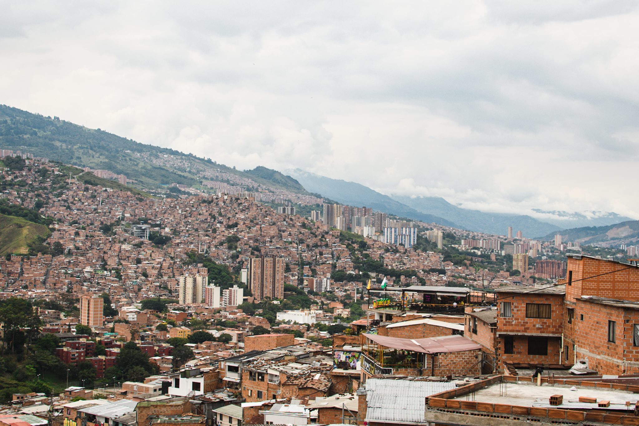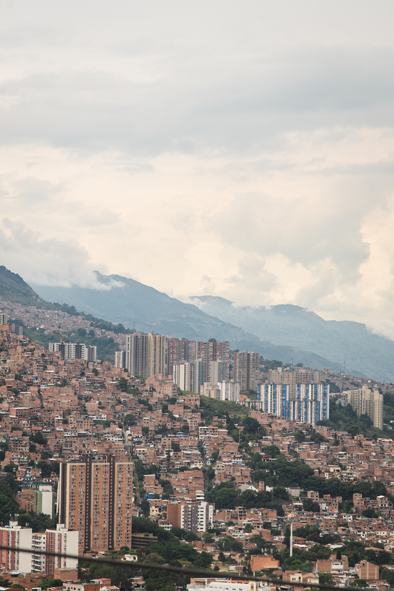 La vue depuis le métro est impressionnante, on commence à se rendre compte de l’immensité de la ville. Ou que l’on regarde il y a des immeubles et des maisons. Medellin est entourée de montagnes qui sont couvertes de maisons/bidonvilles. Au plus on monte, au plus les gens sont pauvres. Les quartiers pauvres sont très isolés car il faut plusieurs heures à pied pour les atteindre. Il n’y a pas vraiment de route. C’est seulement depuis l’installation de télécabines il y a quelques années que ces parties de la ville sont plus accessibles. On mange un bout avant de visiter le jardin mais il commence à pleuvoir et on préfère donc rentrer à l’auberge faire une sieste.