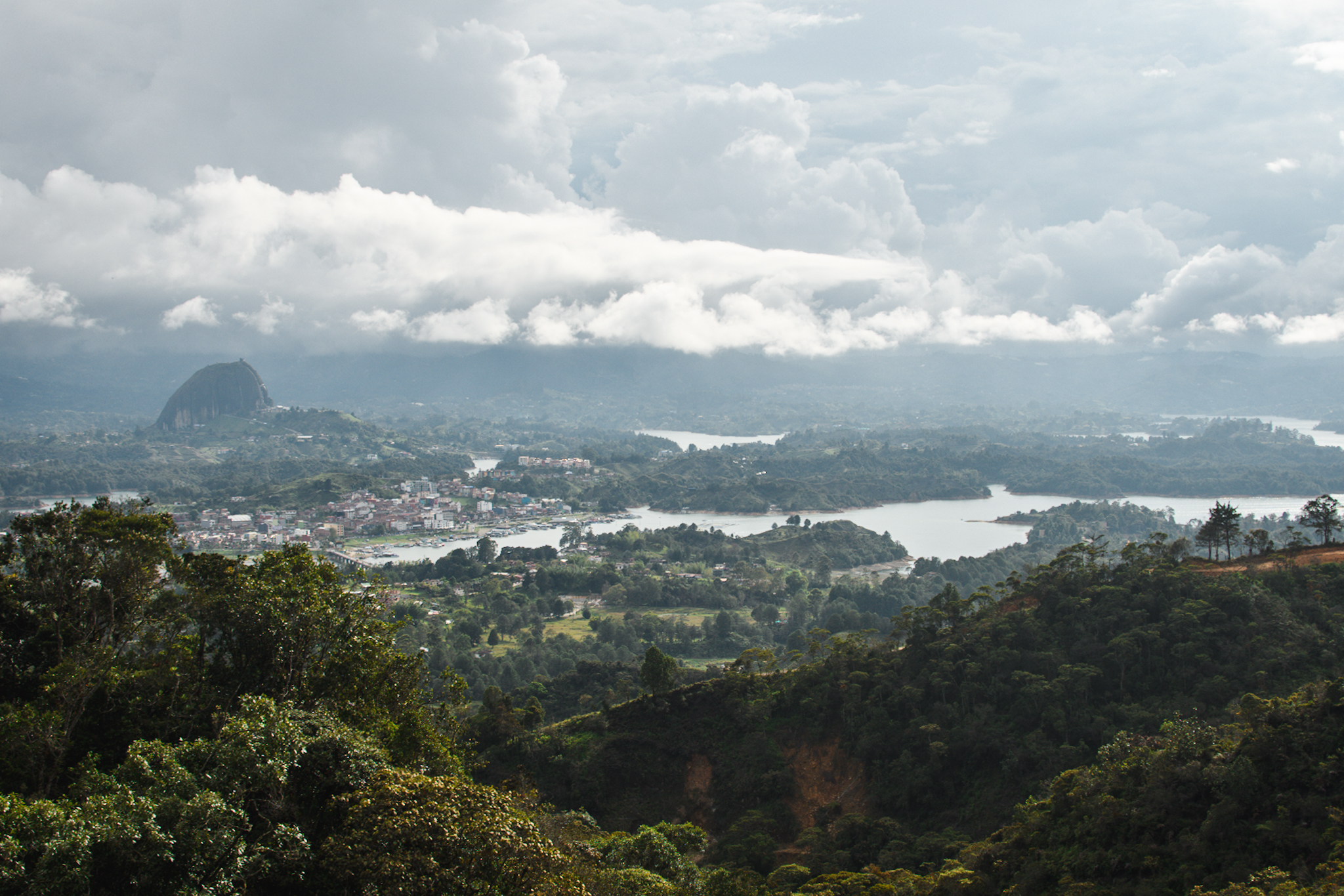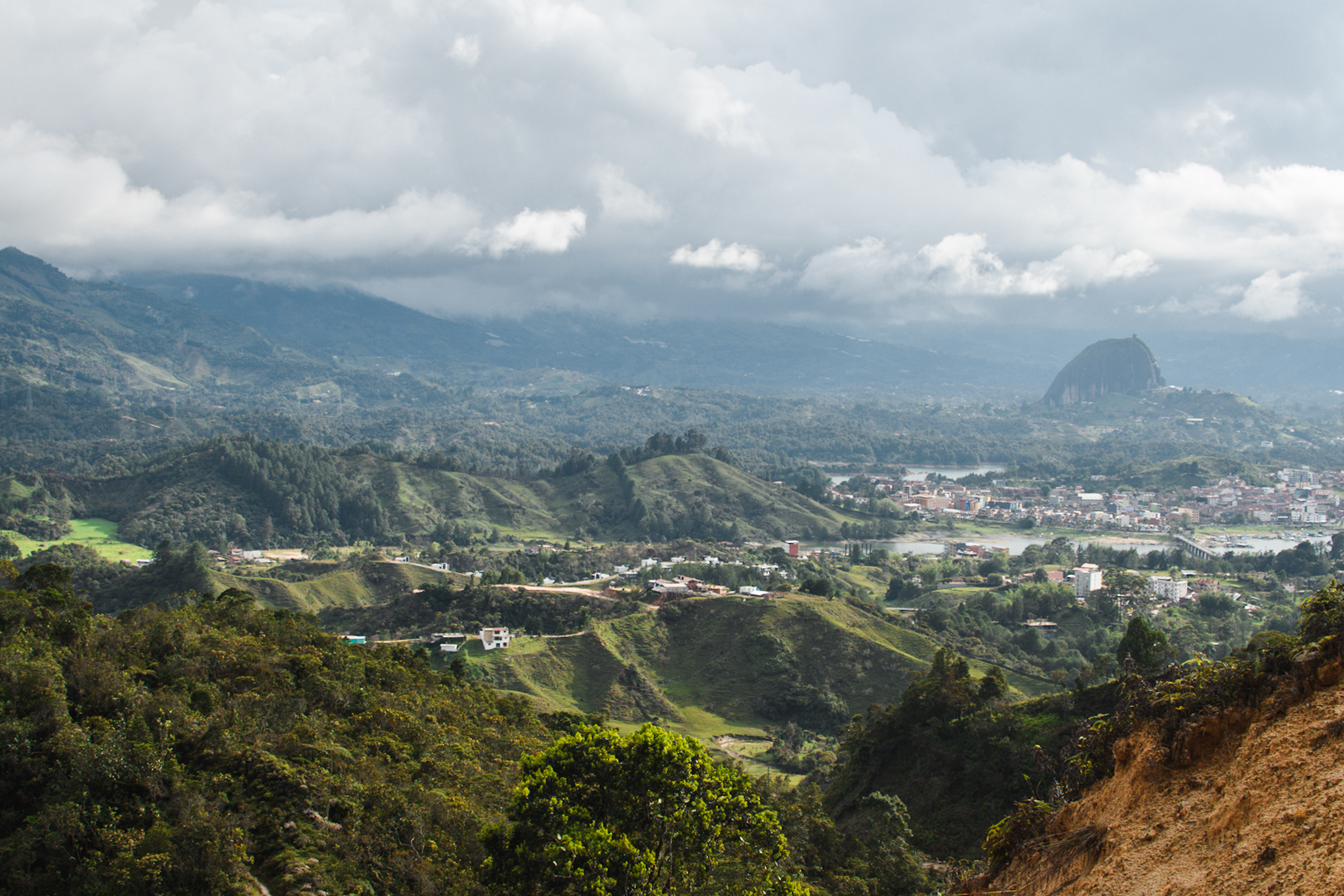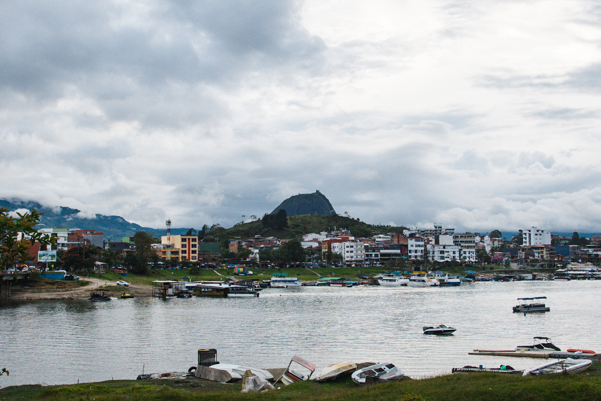Lundi matin, on fait nos affaires et on fait quelques courses avant de prendre le bus. Violaine a repéré une petite fabrique de cookies qui ont l’air divin. On en commande, ils les préparent et on les embarque tout chaud dans le bus. Ils feront office de petit déjeuner et waw qu’est-ce qu’ils sont bons! Ils font partis des meilleurs cookies que j’ai pu manger. Bref, après deux heures de bus, on arrive à Guatape, une petite ville à l’est de Medellin, dans les montagnes. On prend un tuktuk pour aller à notre auberge, qui est un peu excentrée. Elle nous a été recommandé et on comprend pourquoi. Super ambiance, super installation, le seul bémol est qu’elle est remplie de français. L’aprem on se balade. On veut tout d’abord marcher jusqu’à un point de vue mais on se retrouve devant une barrière où il est indiqué propriété privée donc on rebrousse chemin. On marche jusqu’à un autre, pas en altitude mais au bord du lac du coup, mais on nous empêche d’y accéder car c’est devenu un hôtel. Bref, on finira par aller au sommet de la ville d’où on a une petite vue sur la Piedra del Peñol, cette énorme rocher qui fait la réputation de Guatape. De retour à l’auberge, on cuisine et on fait papote.