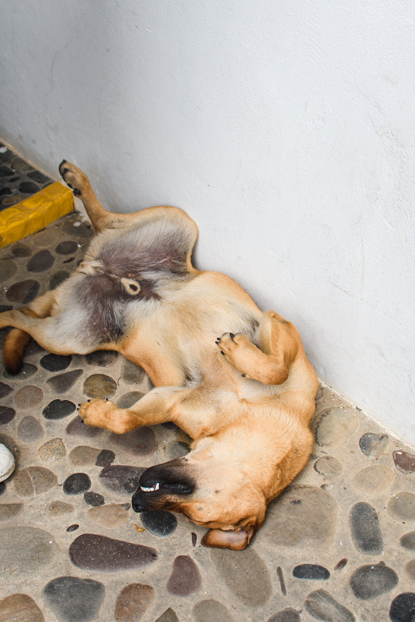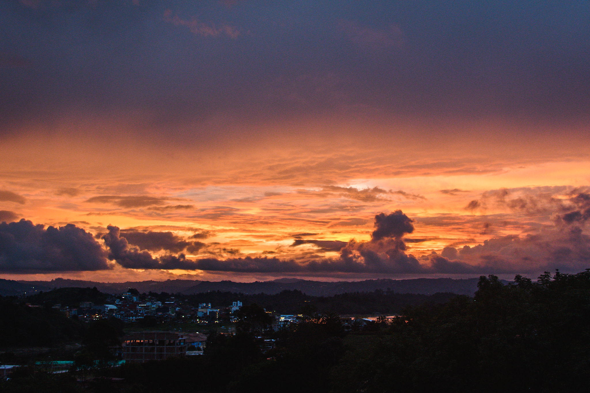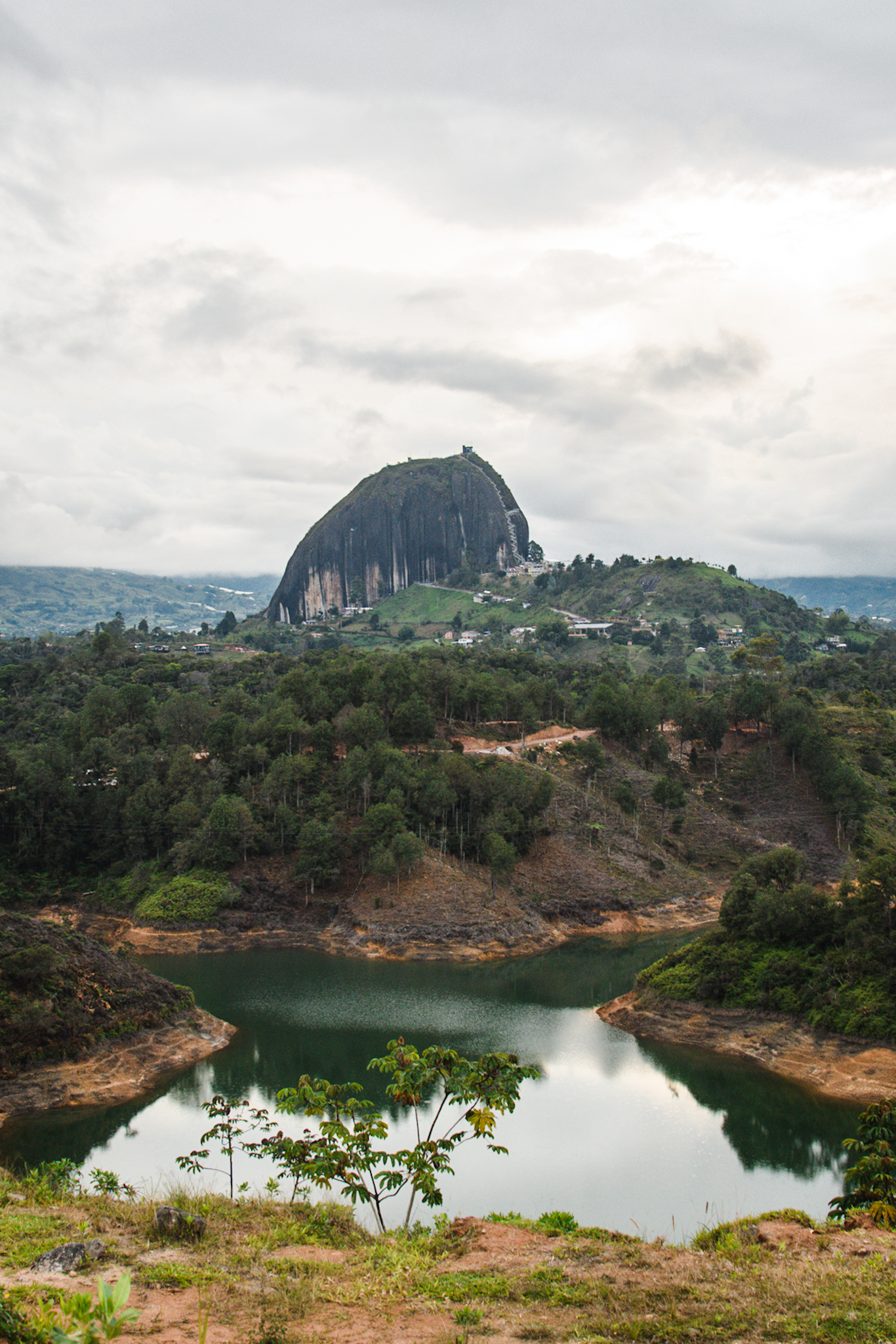 Lundi matin, on fait nos affaires et on fait quelques courses avant de prendre le bus. Violaine a repéré une petite fabrique de cookies qui ont l’air divin. On en commande, ils les préparent et on les embarque tout chaud dans le bus. Ils feront office de petit déjeuner et waw qu’est-ce qu’ils sont bons! Ils font partis des meilleurs cookies que j’ai pu manger. Bref, après deux heures de bus, on arrive à Guatape, une petite ville à l’est de Medellin, dans les montagnes. On prend un tuktuk pour aller à notre auberge, qui est un peu excentrée. Elle nous a été recommandé et on comprend pourquoi. Super ambiance, super installation, le seul bémol est qu’elle est remplie de français. L’aprem on se balade. On veut tout d’abord marcher jusqu’à un point de vue mais on se retrouve devant une barrière où il est indiqué propriété privée donc on rebrousse chemin. On marche jusqu’à un autre, pas en altitude mais au bord du lac du coup, mais on nous empêche d’y accéder car c’est devenu un hôtel. Bref, on finira par aller au sommet de la ville d’où on a une petite vue sur la Piedra del Peñol, cette énorme rocher qui fait la réputation de Guatape. De retour à l’auberge, on cuisine et on fait papote.