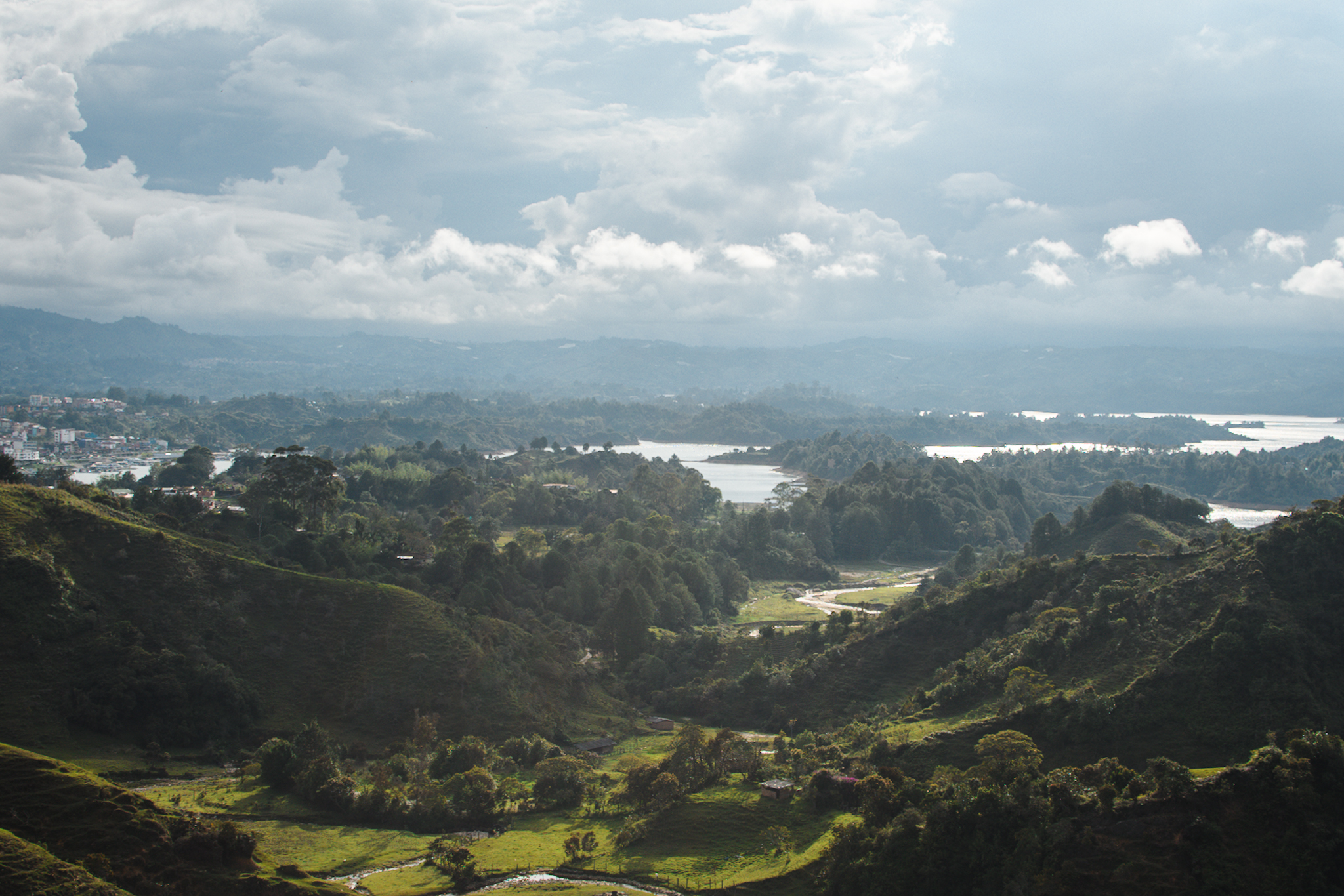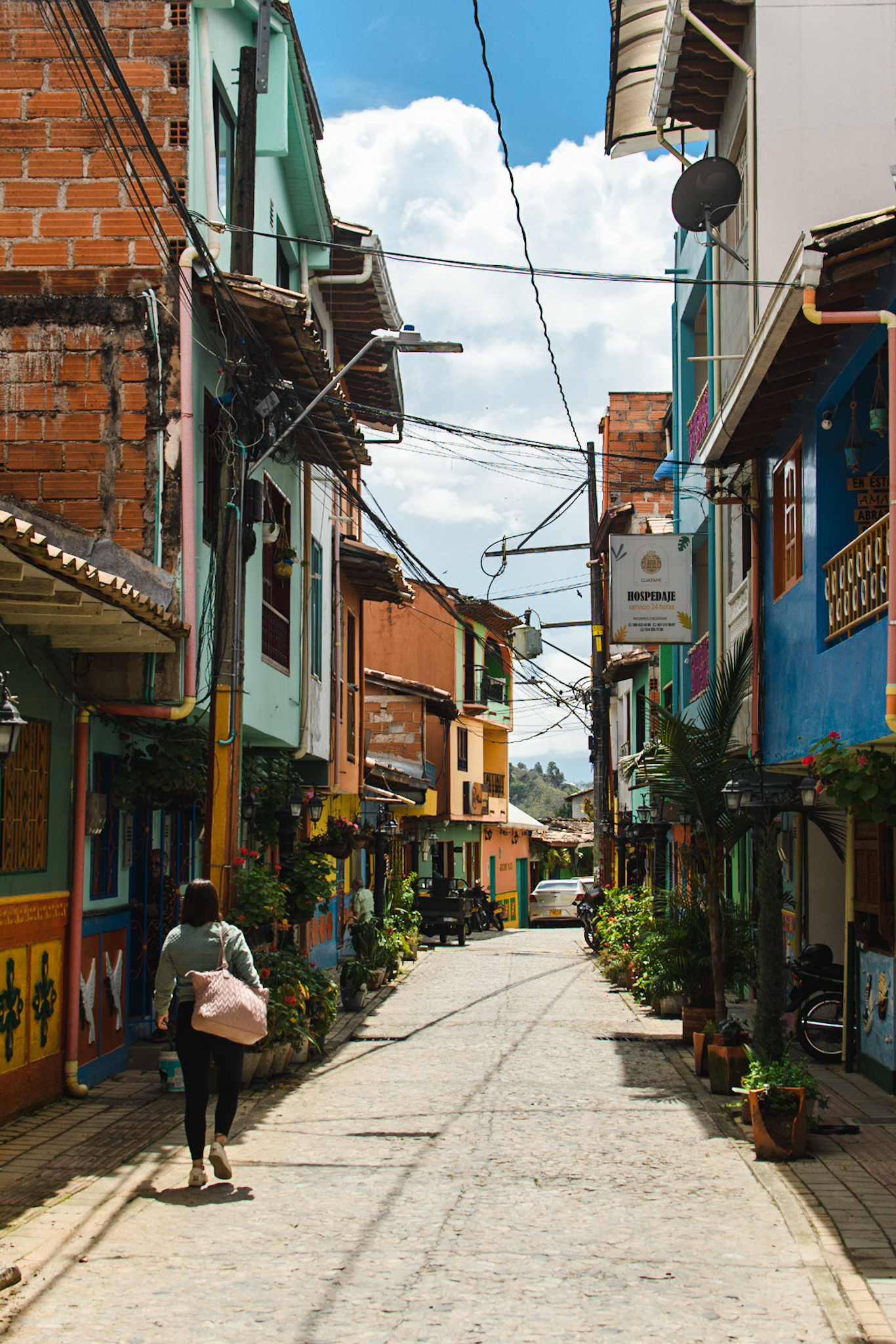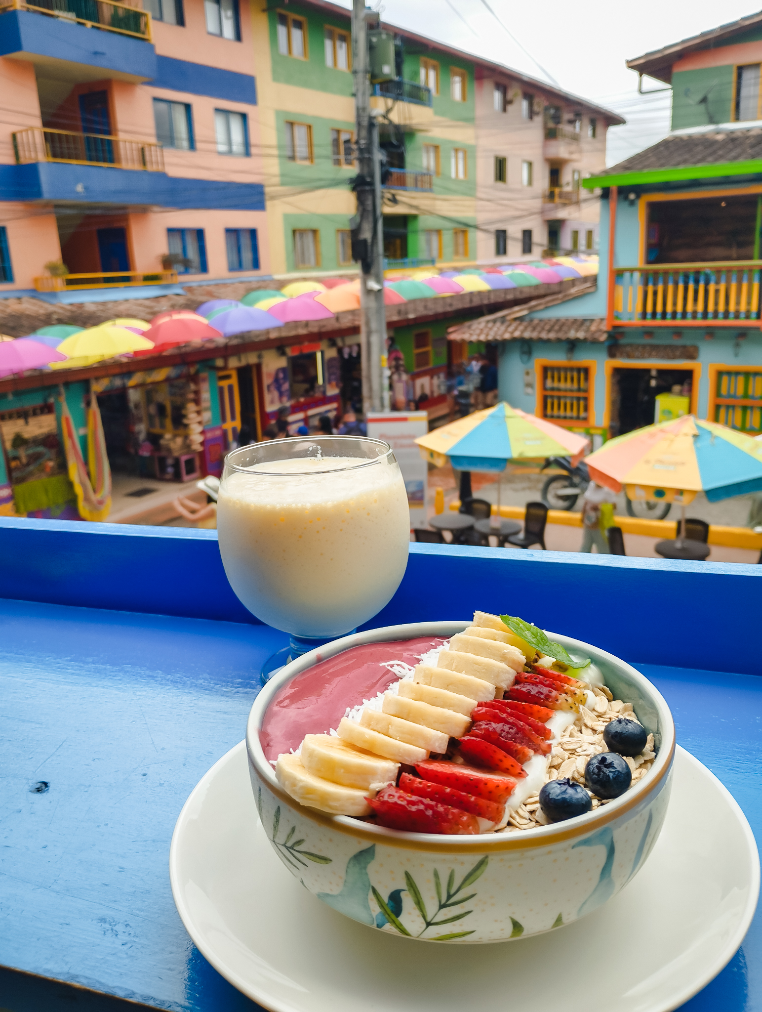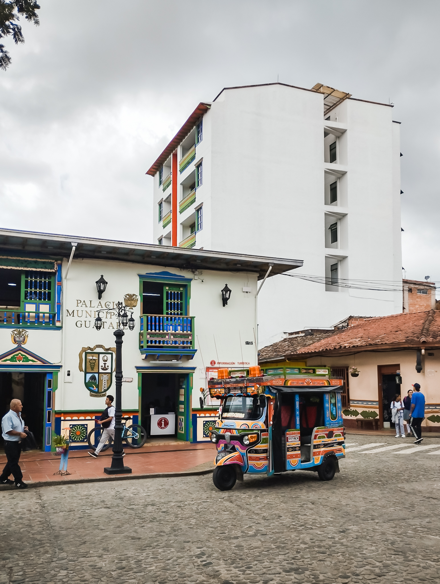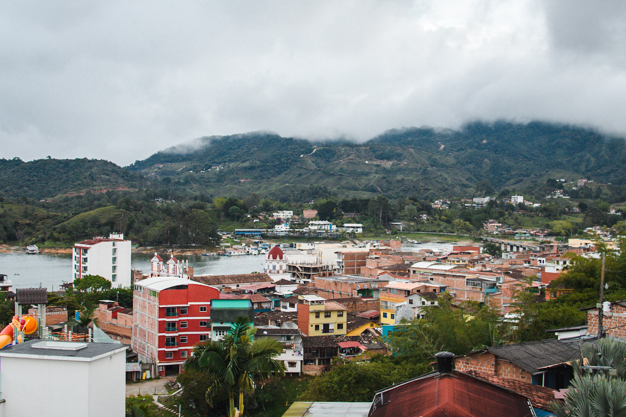 On profite de la vue avant de redescendre. De retour sur la route principale, un bus s’arrête dès qu’on arrive et nous ramène à Guatape, timing parfait ! On se balade dans cette ville colorée qui est vachement mignonne. On fait de nouveau le plein de légumes dans un restaurant végétarien succulent.