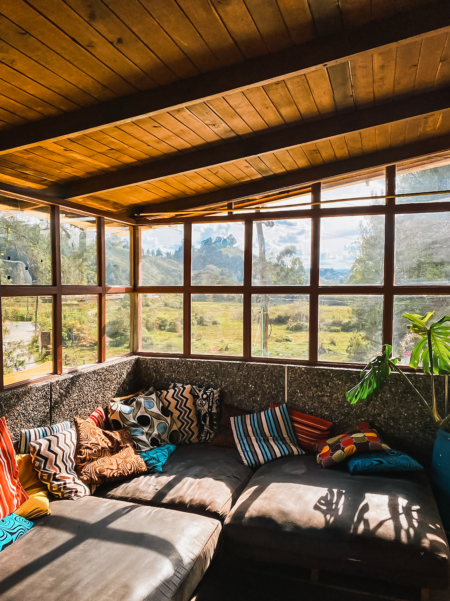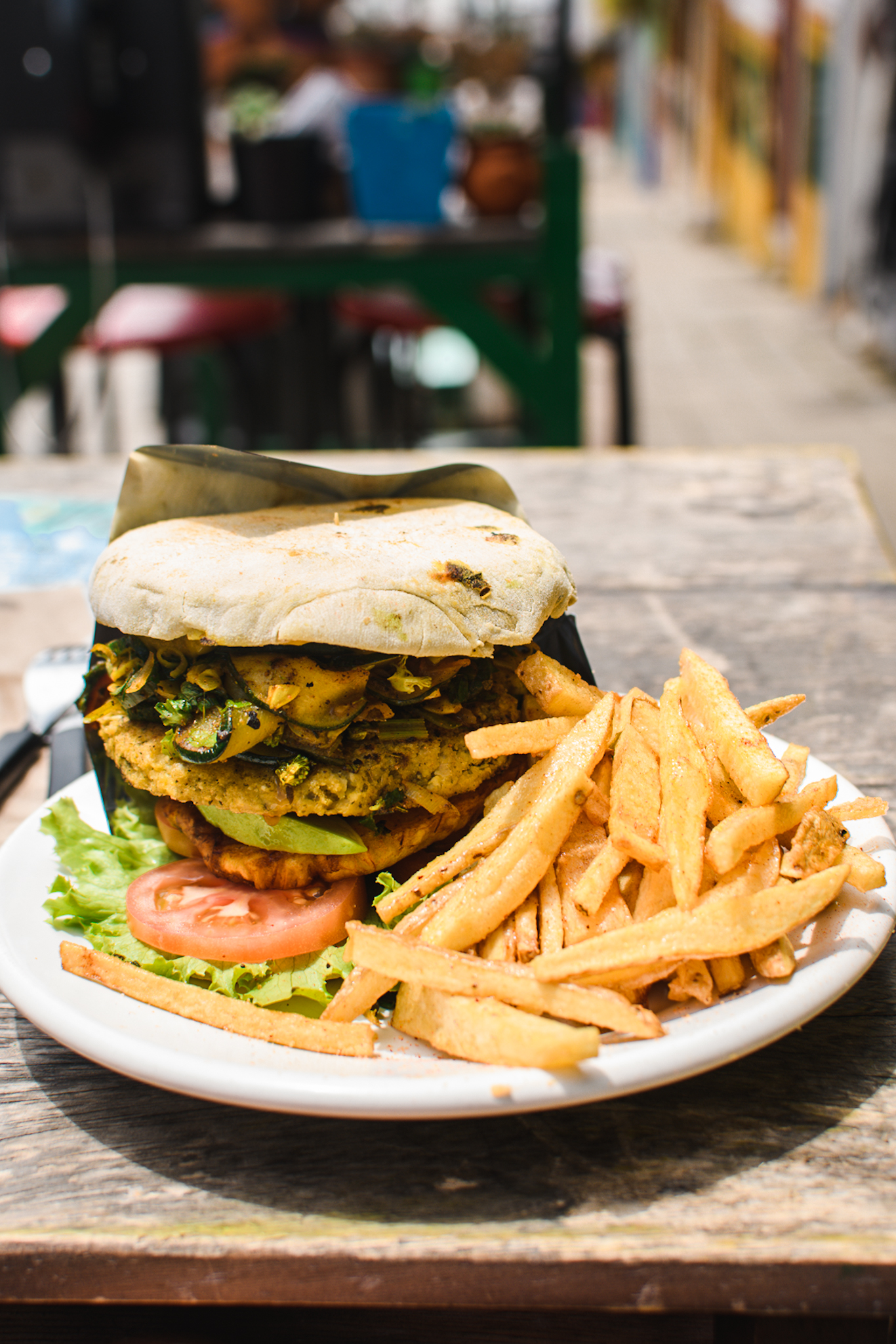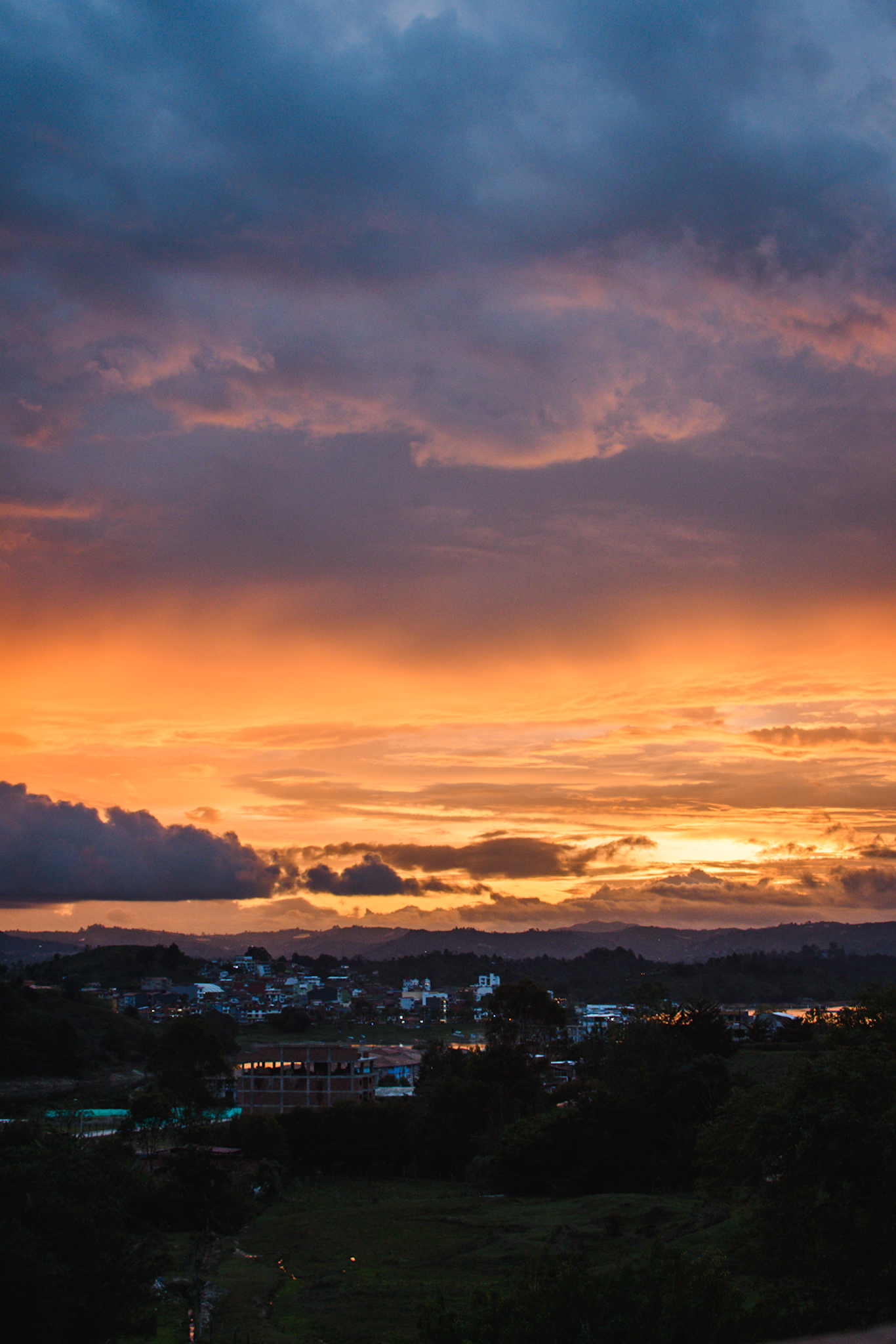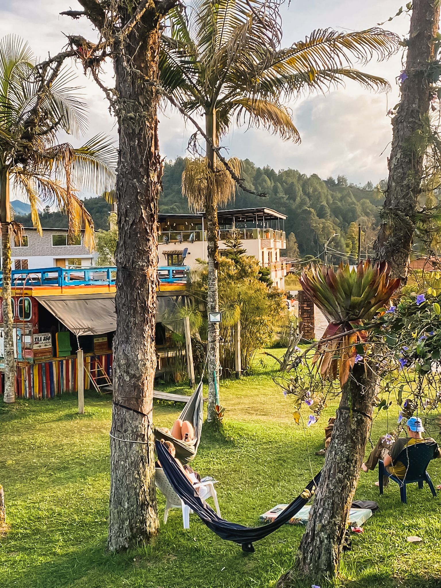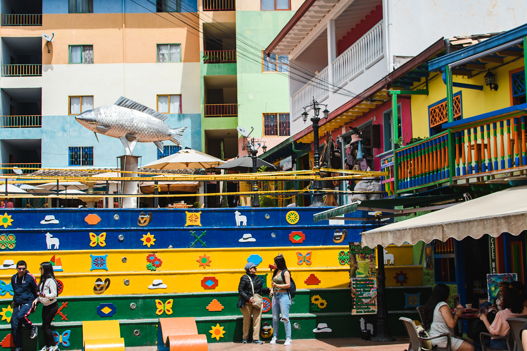 On profite de la vue avant de redescendre. De retour sur la route principale, un bus s’arrête dès qu’on arrive et nous ramène à Guatape, timing parfait ! On se balade dans cette ville colorée qui est vachement mignonne. On fait de nouveau le plein de légumes dans un restaurant végétarien succulent.