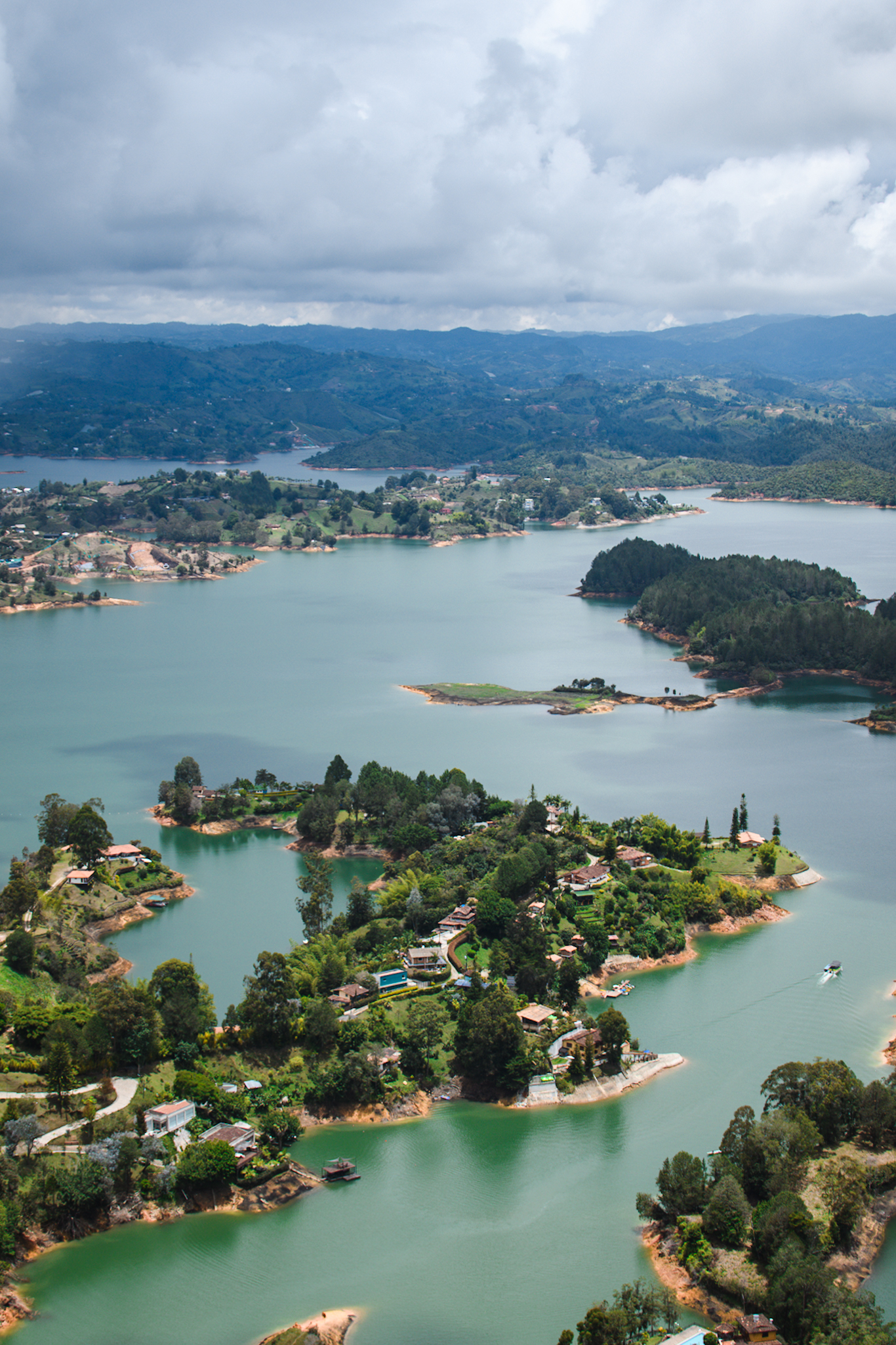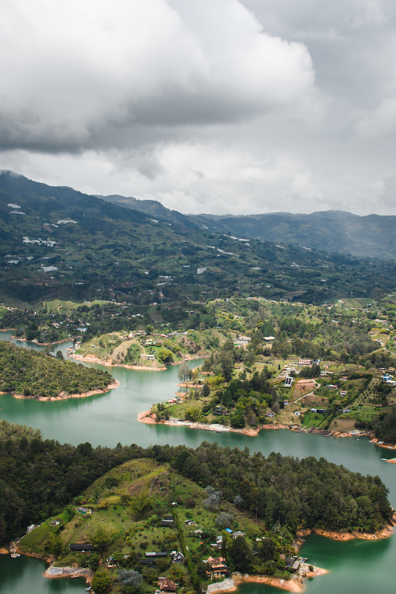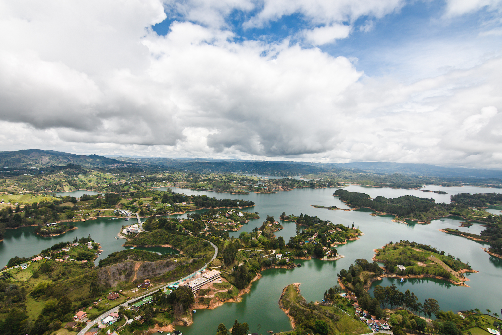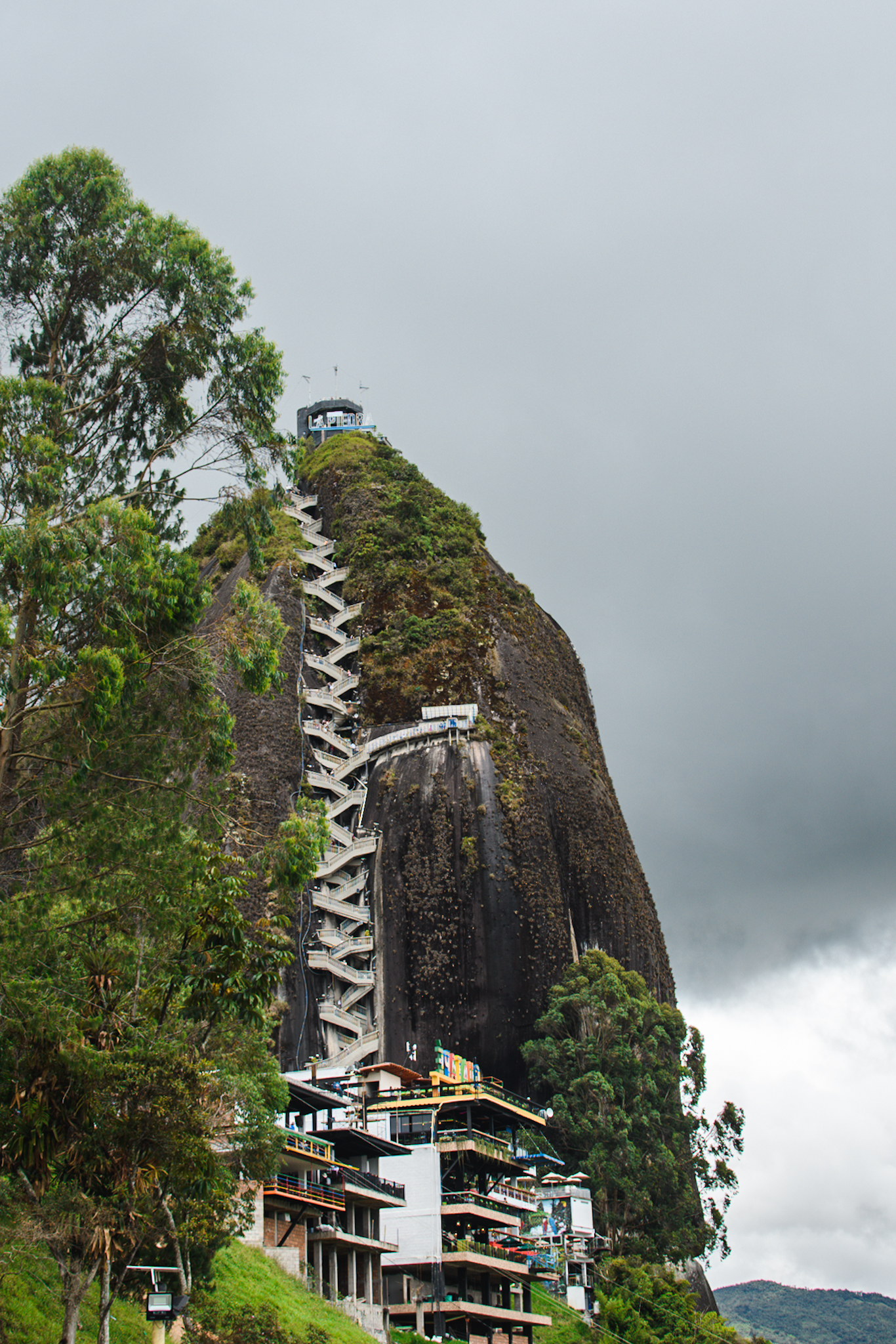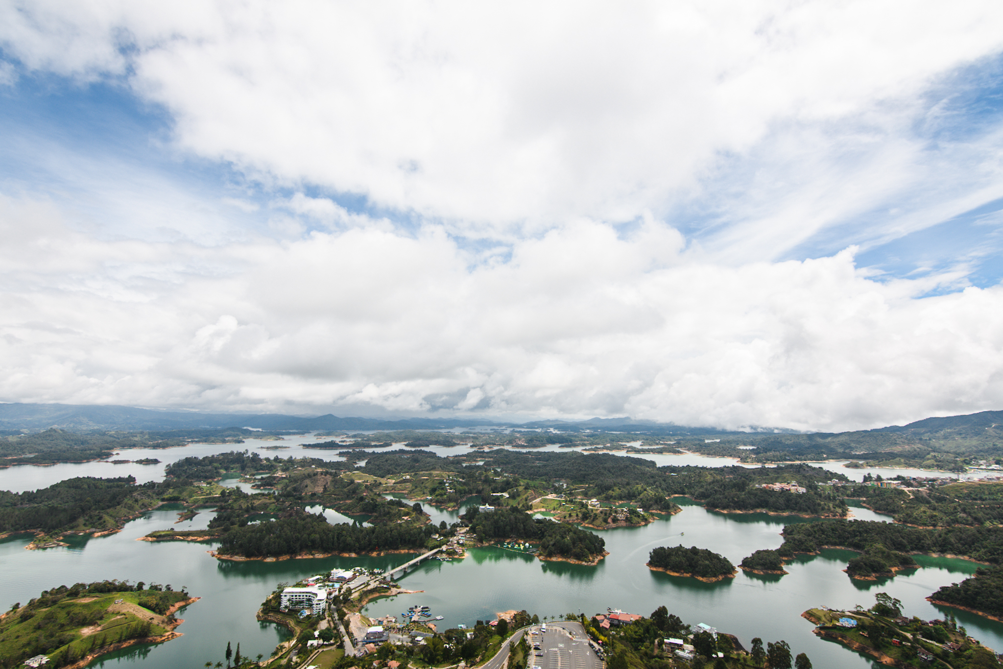 Mardi, on fait le plein de fruits grâce au petit déjeuner proposé par l’auberge. Ensuite on marche jusqu’à la gare des bus où on arrive pile poil à temps pour le bus. Quelques minutes plus tard il nous dépose au pied de la piedra, enfin presque, il faut qu’on grimpe un peu jusqu’à l’entrée. Là on achète nos tickets et on commence les escaliers. 660 marches nous permettent d’arriver au sommet. Et la quelle vue ! Le lac Peñol est un lac artificiel créé pour produire de l’électricité. Il s’étend à perte de vue, le haut des anciennes collines créant des îlots. C’est sur une de ces rives que Pablo Escobar possédait une maison, qui est maintenant en ruine.