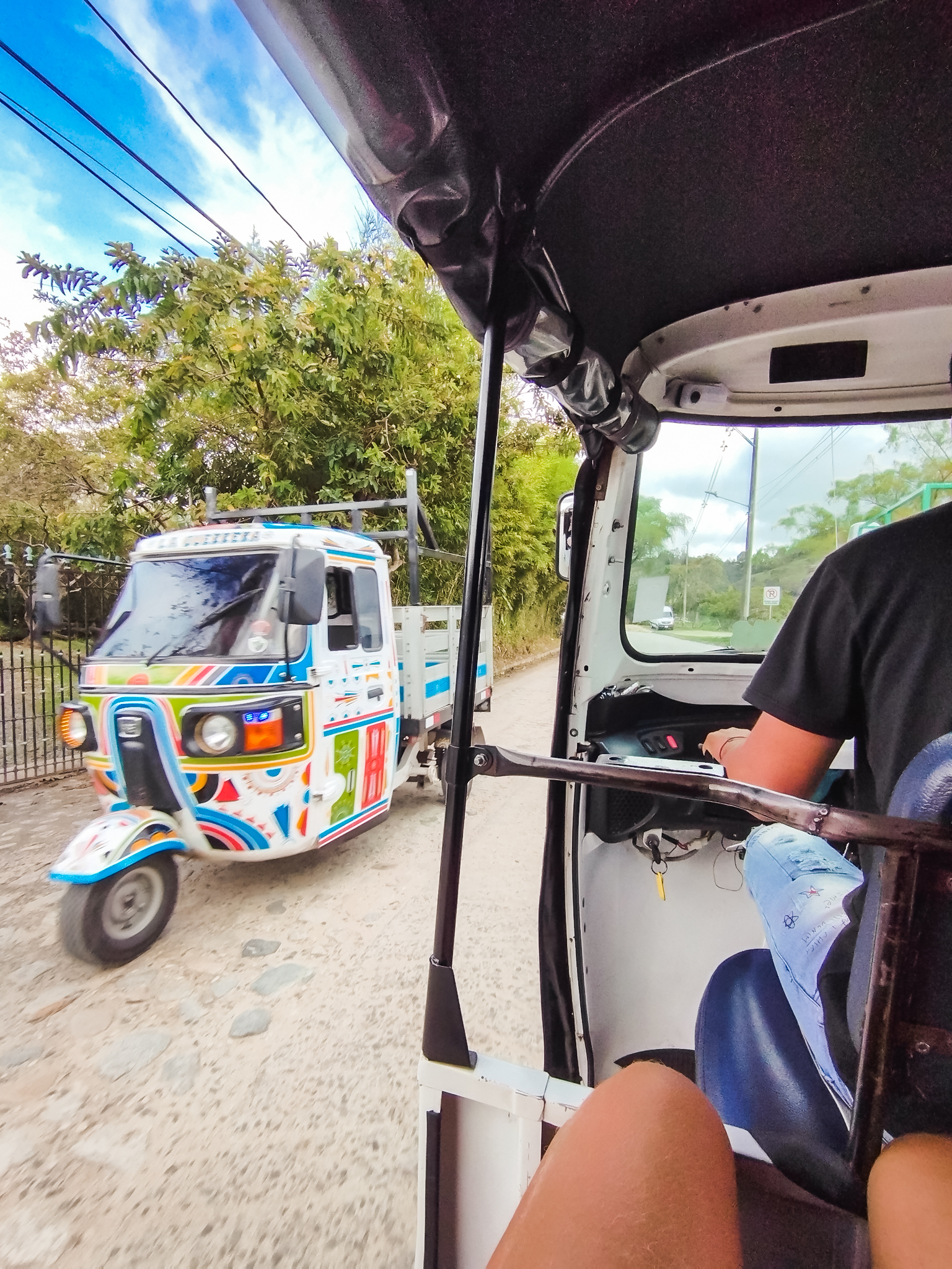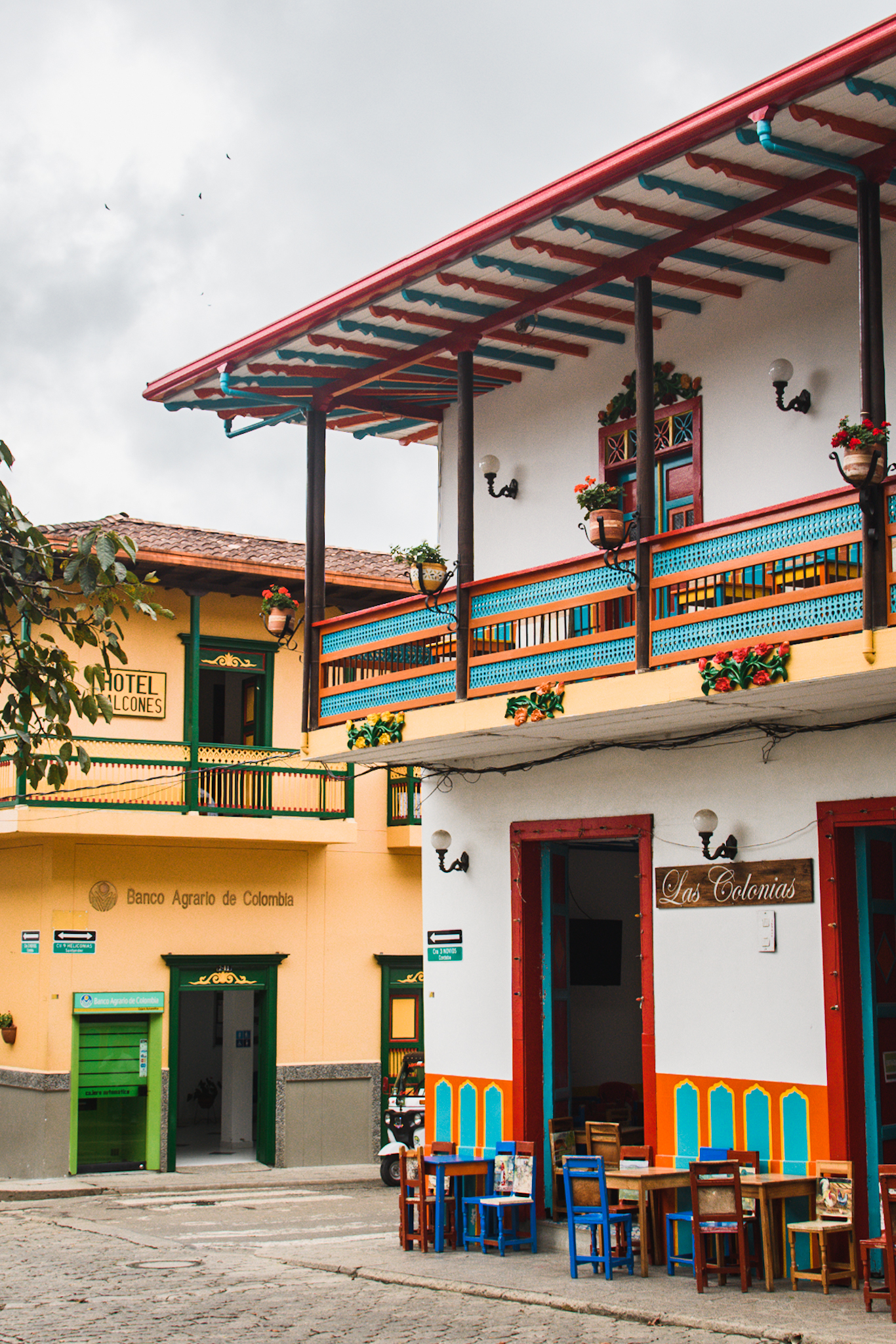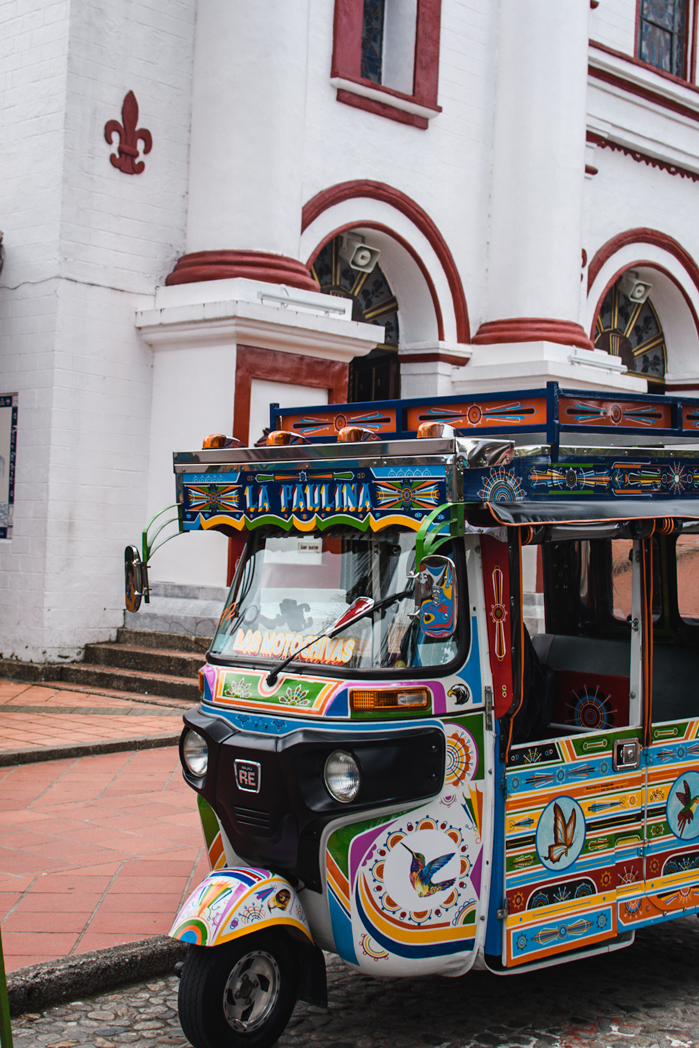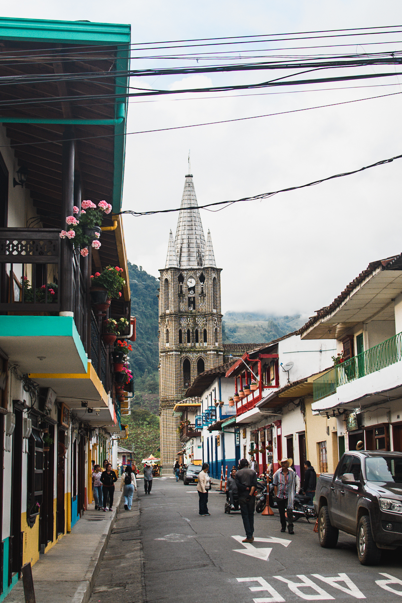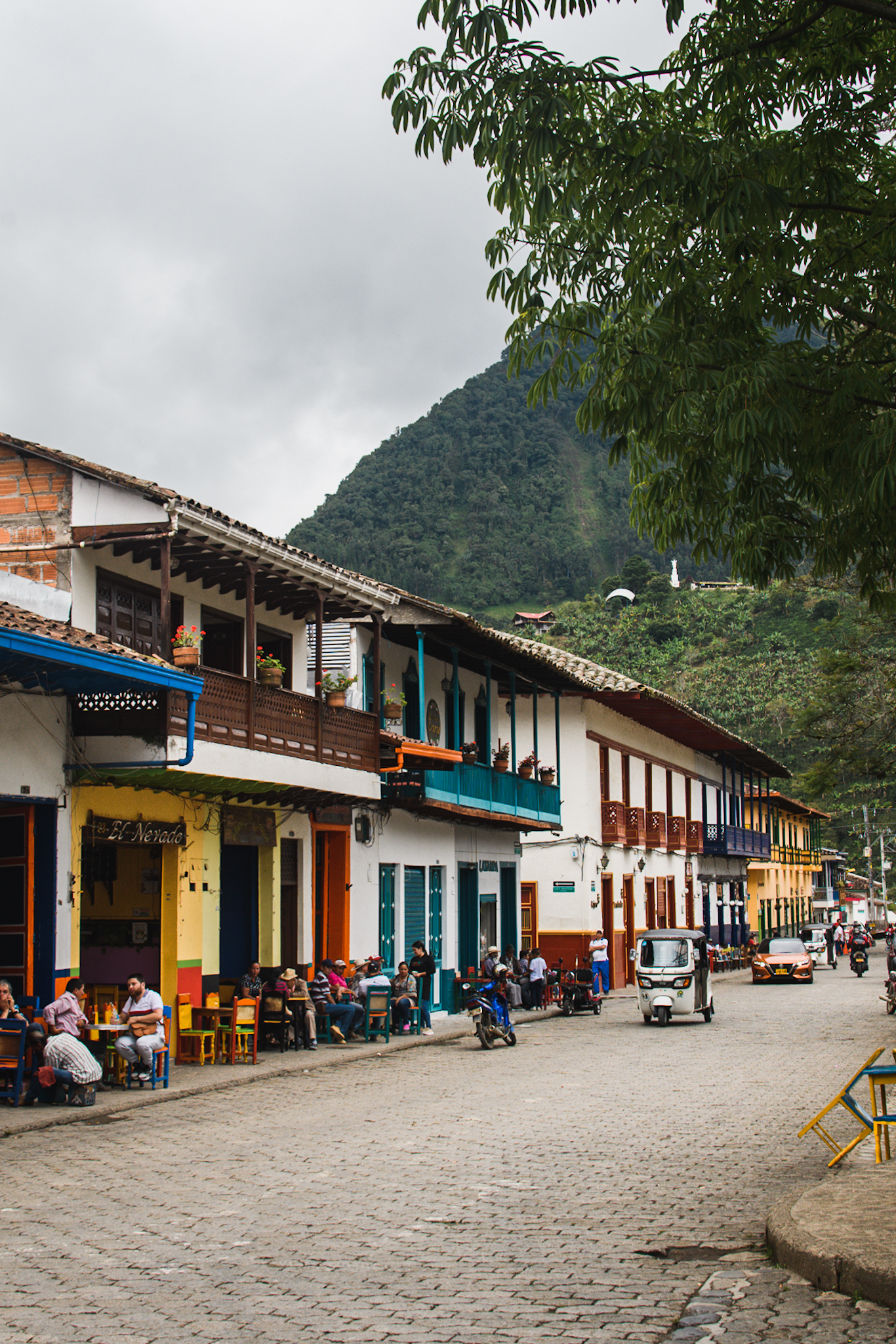 Samedi, on se réveille de nouveau tôt pour attraper le bus de 8h qui part vers Riosucio, première étape de notre trajet vers Salento. Il n’y a que des touristes dans le bus. Il faut 4h pour faire 50km et on comprend vite pourquoi. Ce n’est pas une route mais un chemin cabossé qui longe les montagnes. Heureusement la vue est superbe et nous occupe. De Riosucio, on prend un autre bus pour Salento, notre destination finale.