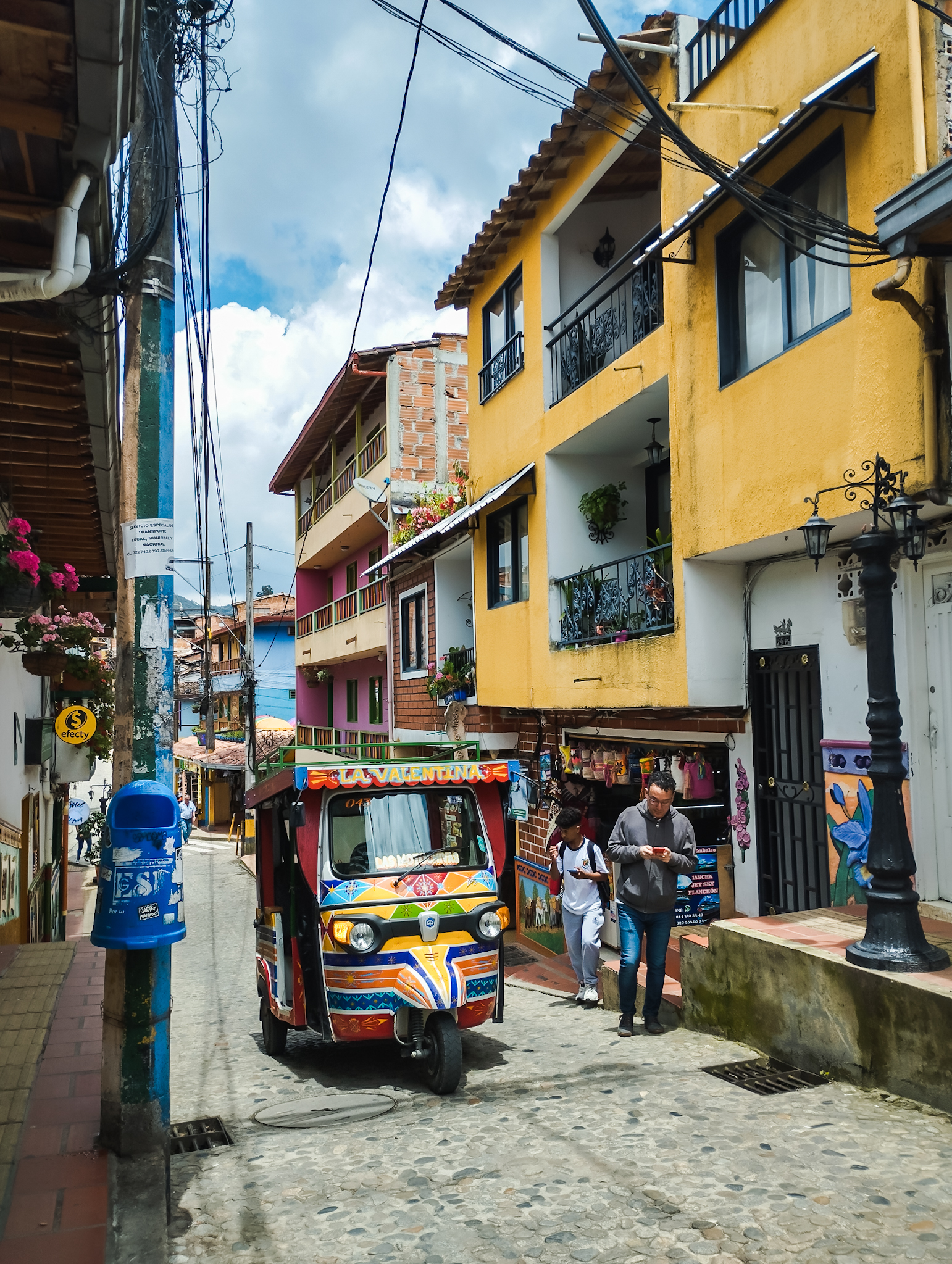 Jeudi, il fait moche et ça tombe bien on a prévu de passer la journée dans les bus. On commence par un tuktuk qui nous dépose près de la gare des bus, ensuite un bus pour Medellin, un taxi pour aller à Poblado car Vio a oublié ses airpods dans l’auberge de Medellin (on en profite pour racheter des cookies), un taxi pour aller à un autre terminal et un bus pour Jardín, à 4h de là. On débarque en fin d’après-midi et on marche jusqu’à notre auberge (recommandée par Paul). Le soir, on va au restaurant et j’ai la bonne idée d’y oublier ma gourde. Je ne m’en rends compte qu’une fois le restaurant fermé et je vois ensuite qu’ils partent en vacances jusqu’au lundi. Heureusement je parviens à les contacter et on s’arrange pour que je récupère ma gourde avant qu’ils partent le lendemain matin.