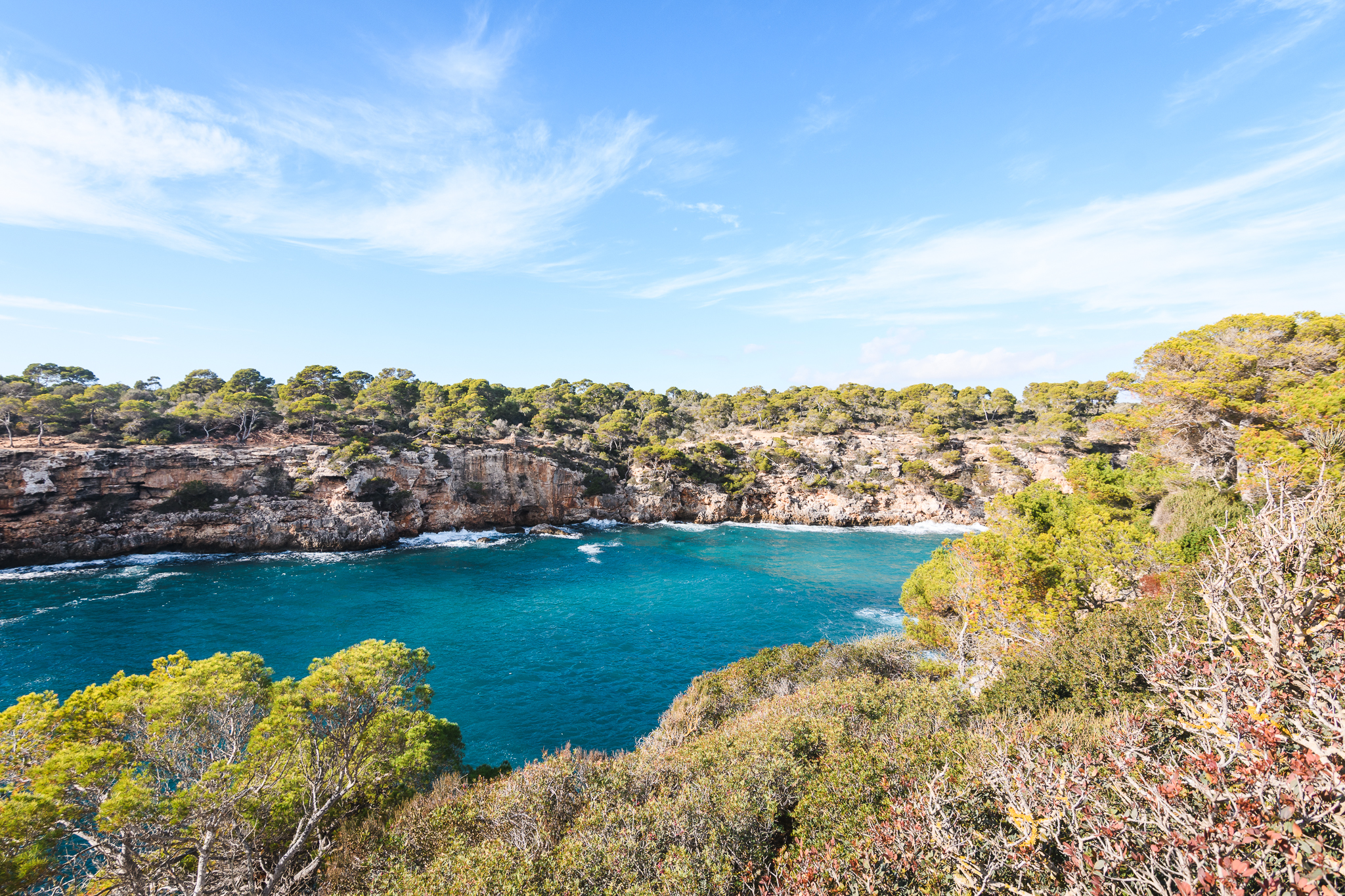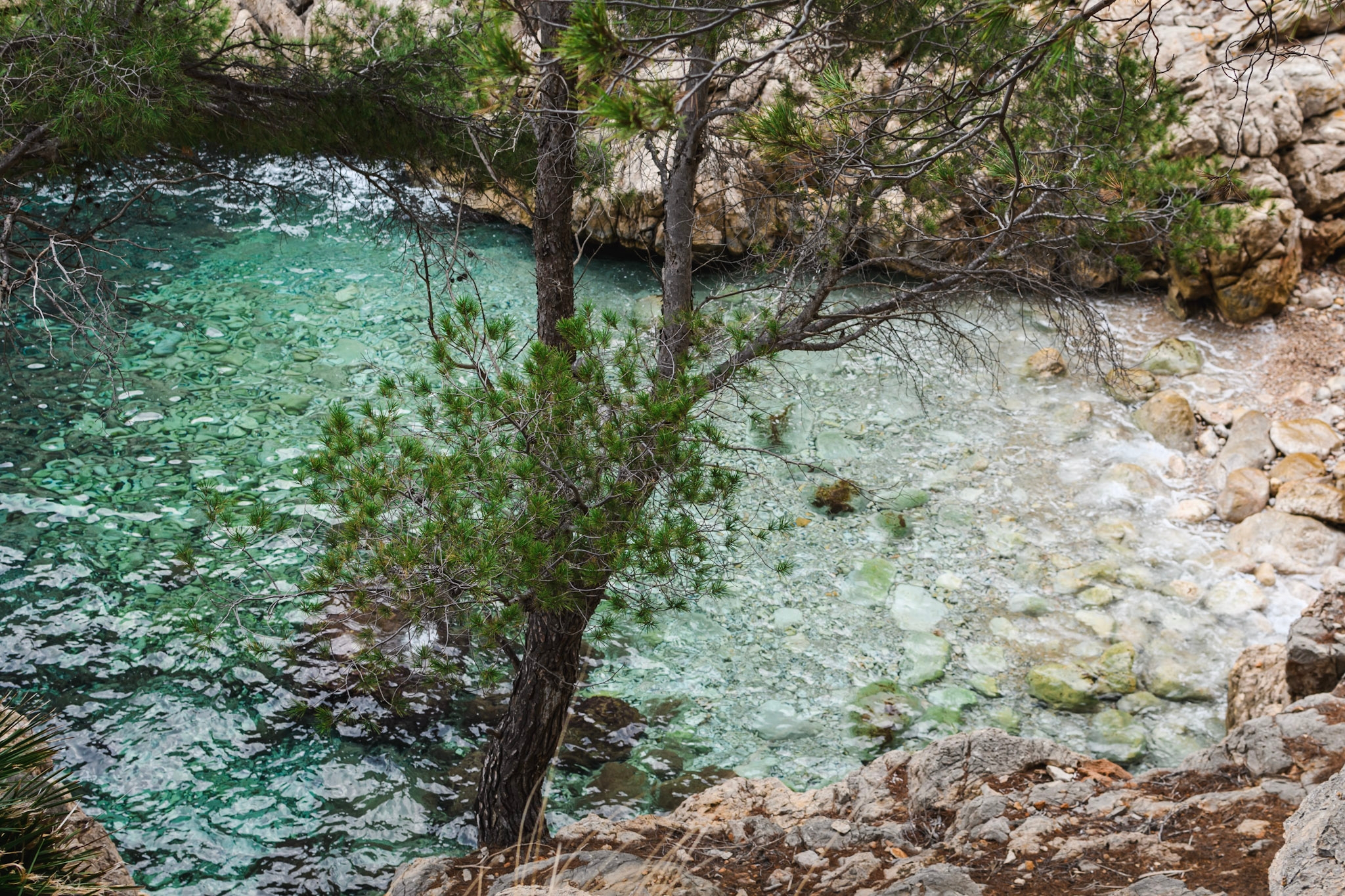 Jeudi, on part un peu plus au sud, explorer d’autres criques (étonnamment). La première est Cala Sa Nau. Il n’y a vraiment pas un chat. C’est déjà très joli mais ça doit être encore plus beau avec le soleil.