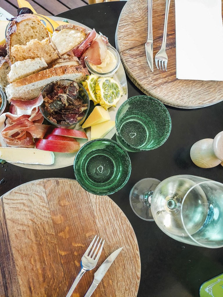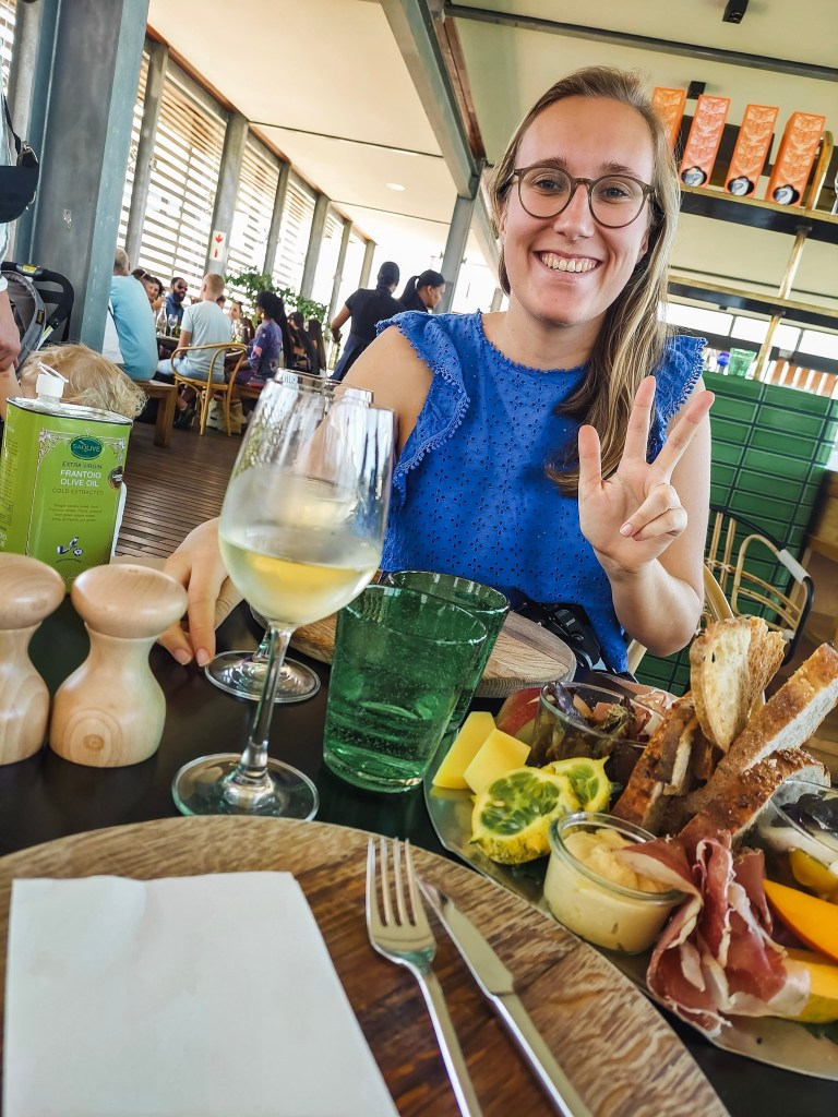 Vendredi, on fait un switch d’Airbnb sur le temps de midi, direction la région des vignobles, à 40 min de Cape Town. Cette fois-ci en afterwork, on fait une dégustation de vin. 2,5€ la dégustation de 5 vins, c’est très sympatique. On prend un plateau de fromage avec. Je ne m’y connais pas en vin, mais Lio savoure. On se rend ensuite au Lourensford Market, un endroit couvert très sympa avec plein de stand, on y trouve notre bonheur pour le repas.