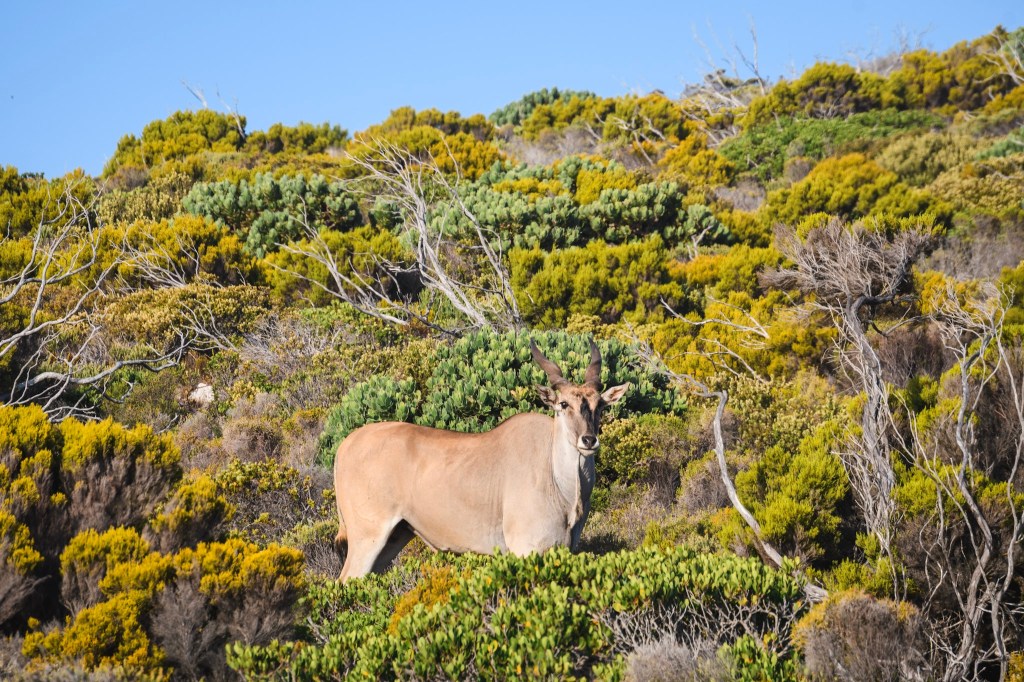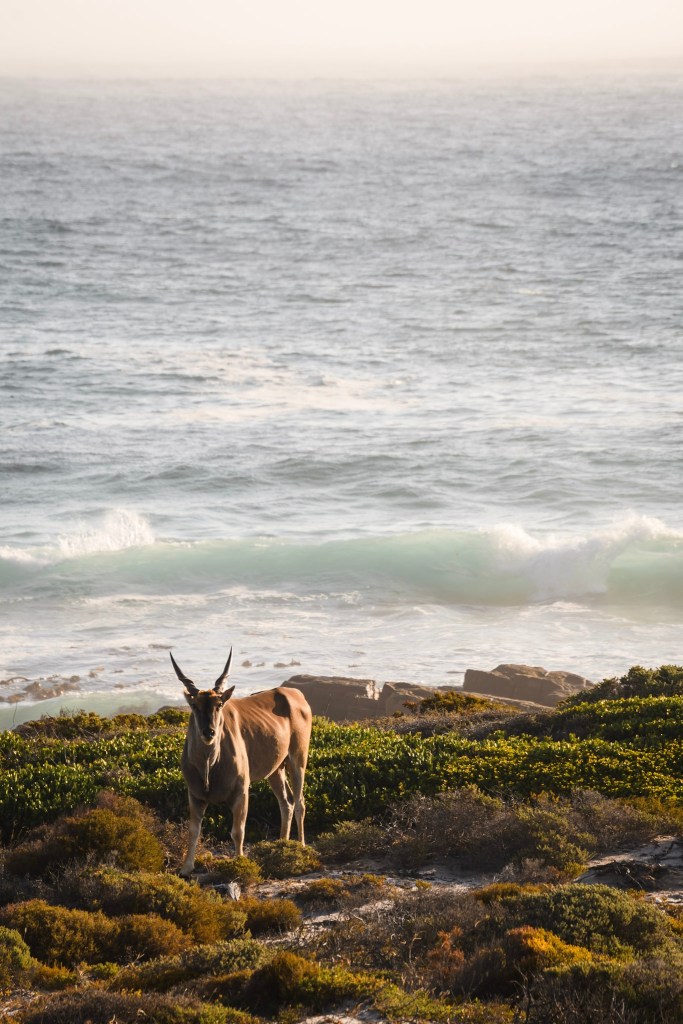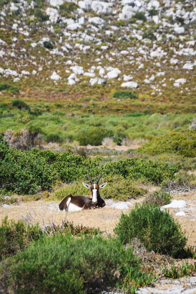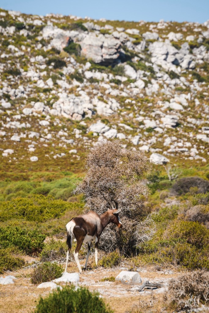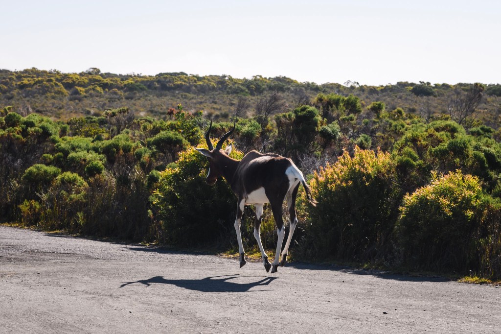 Après la visite, Cap vers le sud avec Lio. On s’arrêtera rapidement à Boulder beach pour tenter d’apercevoir des manchots sans payer l’entrée, puis on lunch avant d’arriver au parc qui couvre toute la pointe au sud de Cape Town, le Table Mountain National Park. On commence par Olifantsbos Beach où on aperçoit des Bontebok, sorte d’antilopes à la tête blanche. En arrivant, on voit juste une autre voiture, et le monde est vraiment petit car il s’agit de Victor, mon ancien cokoteur qui est là pour un an. On papote avant de repartir vers Cape Point et puis vers le fameux cap de Bonne espérance. On croisera des autruches et d’autres antilopes (des élands) en chemin.