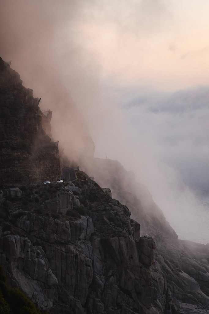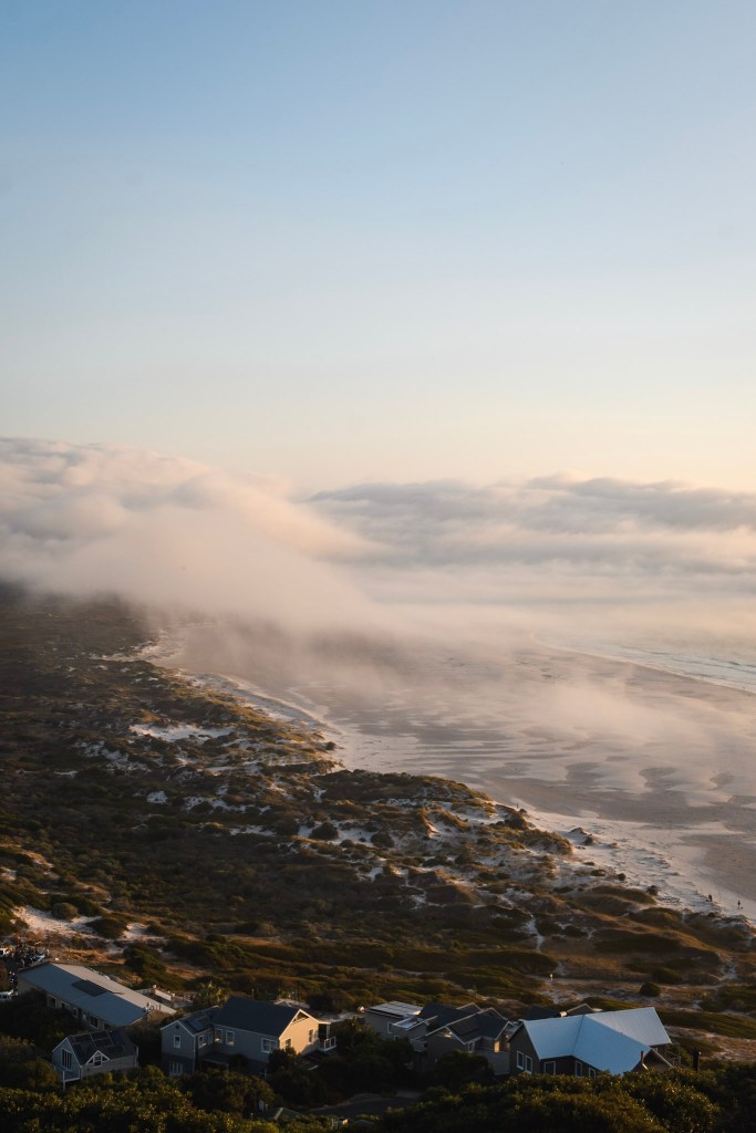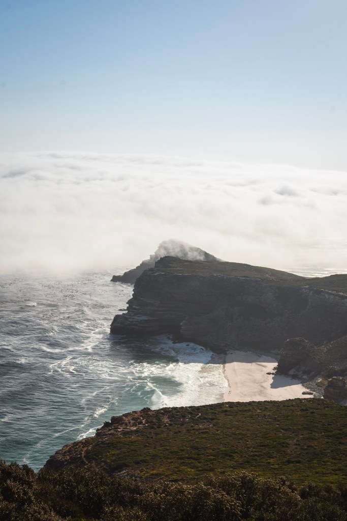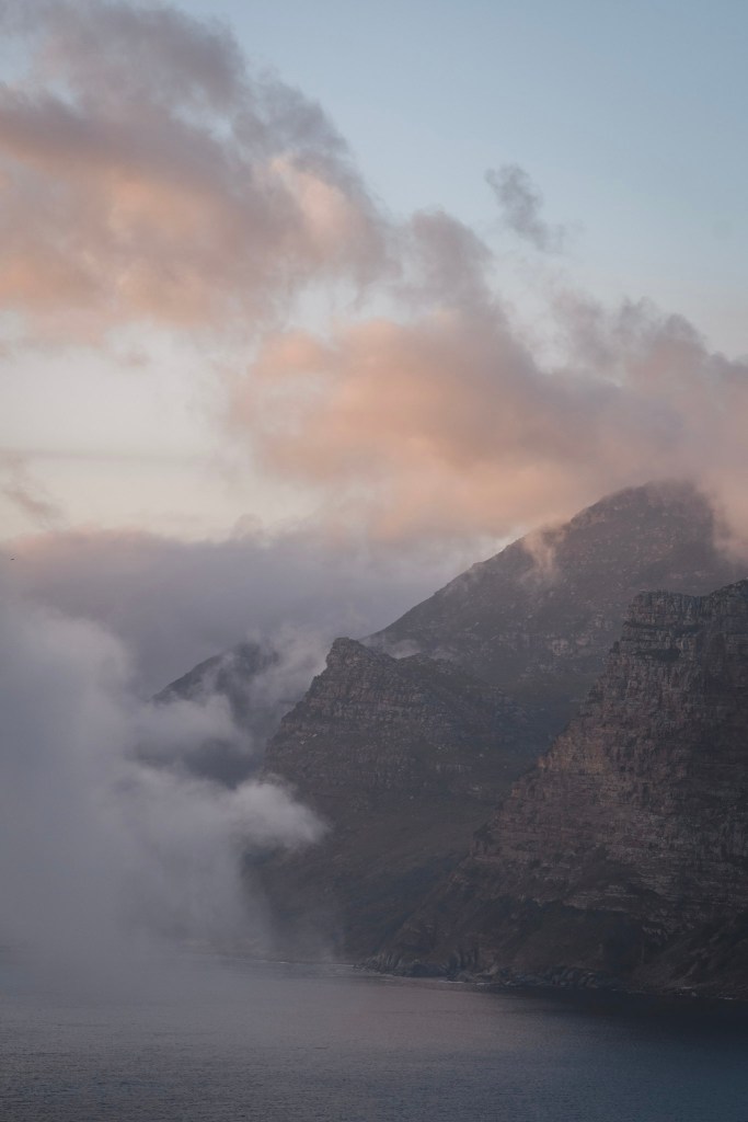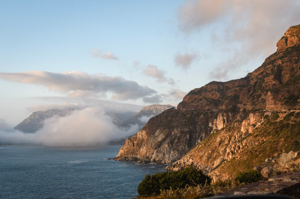 Sur la route du retour, on remonte par l’Ouest et par une route qui sinue le long des falaise, la Chapman’s Peak Drive. On s’arrête à différents points de vue, jusqu’à ce que les nuages arrivent et englobent toute la ville, on ne verra plus rien du tout.