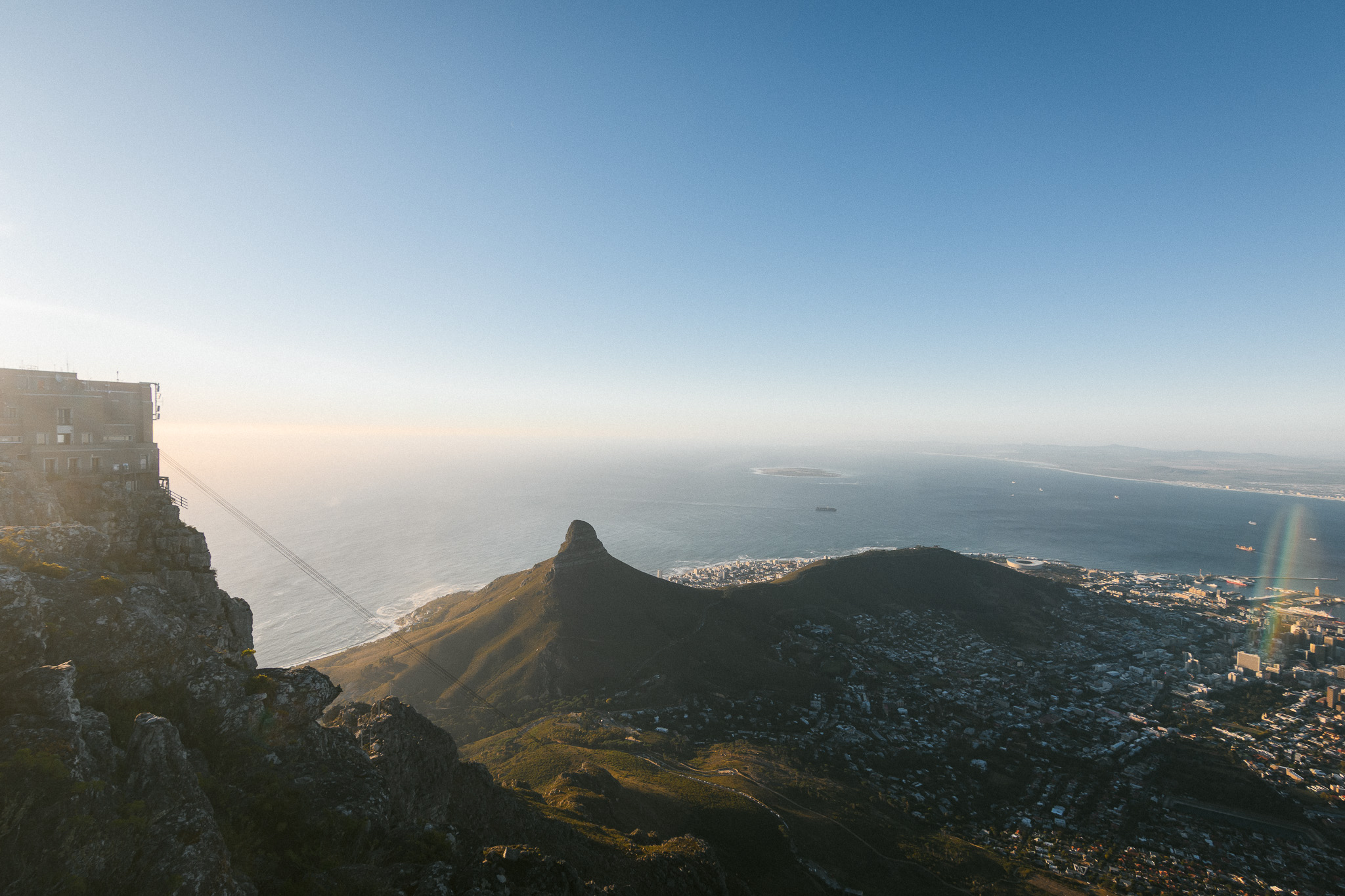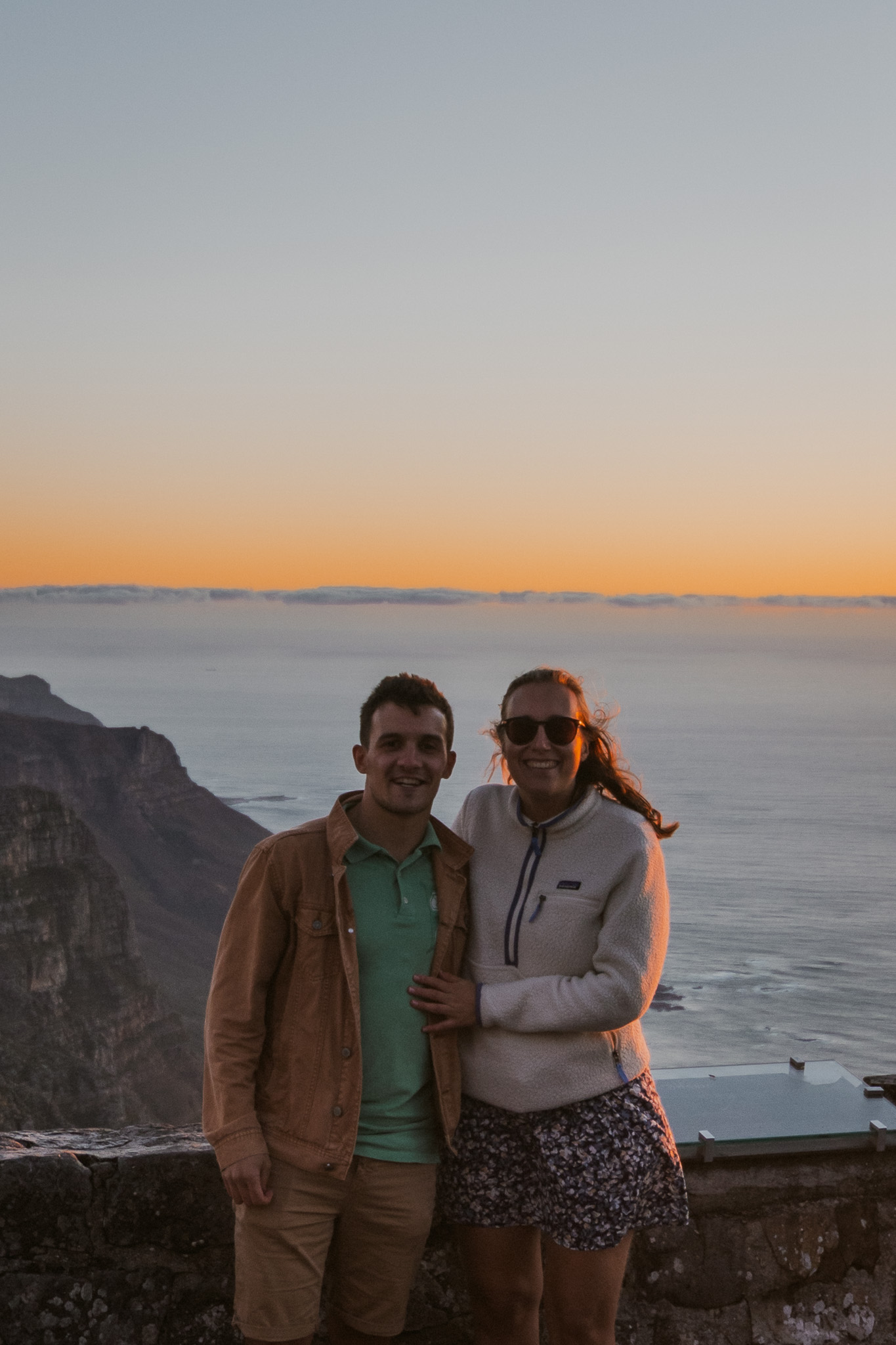 - Visiter Table Mountain. Les nuages sont présents, il fait glacial, on frissonne et on résiste au froid pour voir le sunset. Mais on est content de rentrer pour se réchauffer.