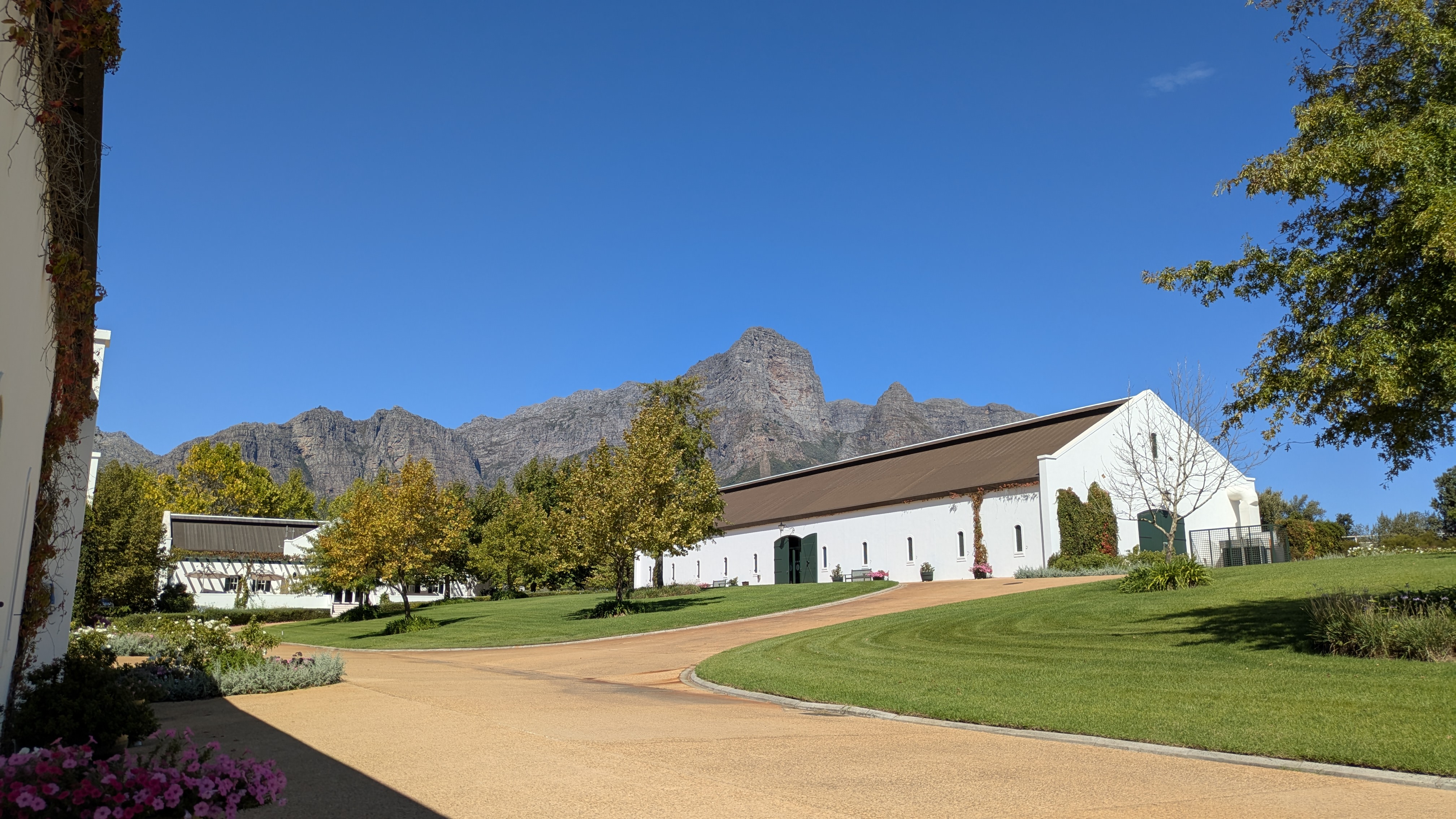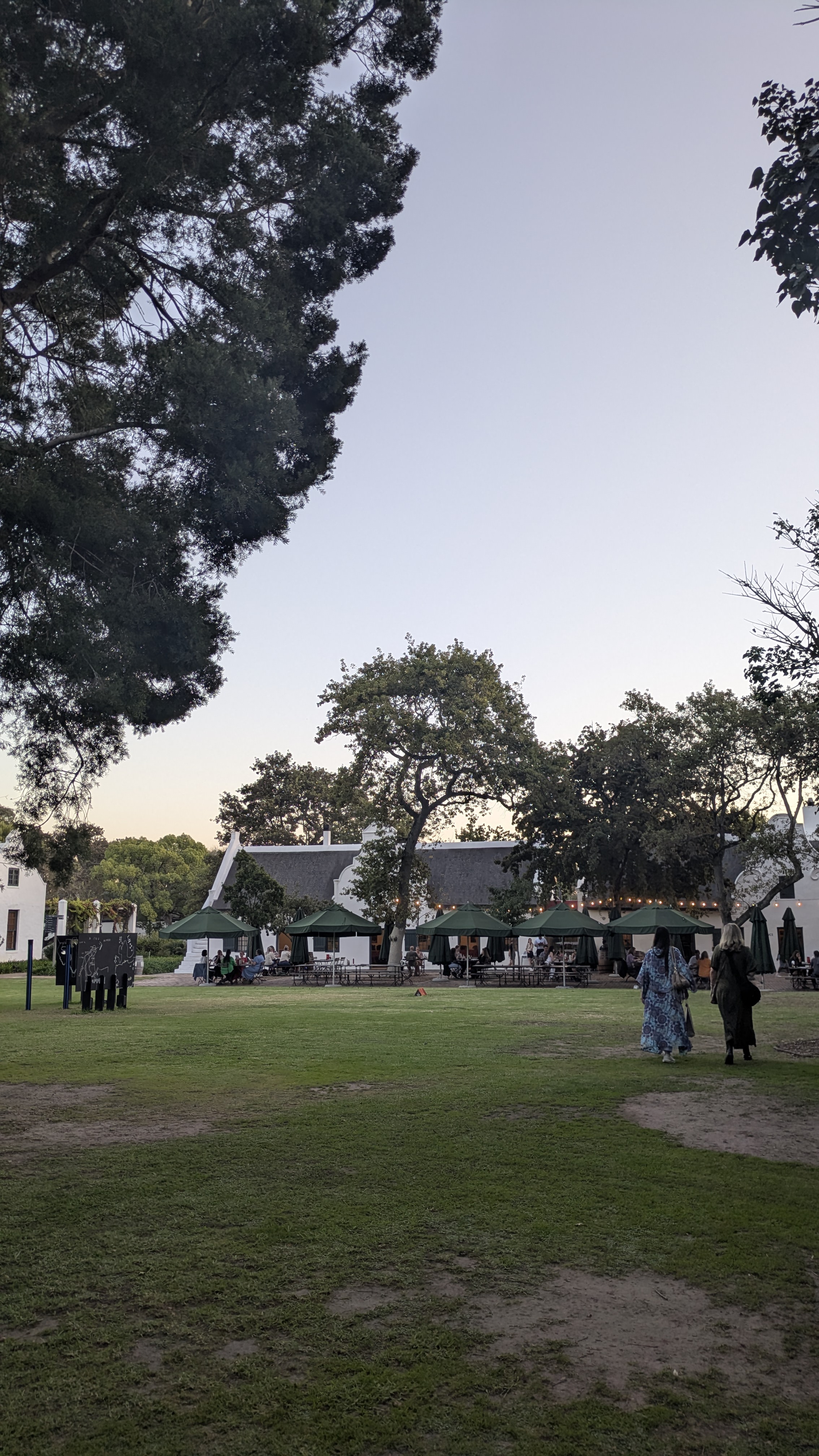 Samedi, on prend la route de Franschhoek mais par le sud, j’ai fait cela l’année passée et la route est magnifique. On visite ensuite un petit vignoble, Eikehof, sympa mais on est surtout ravi de voir des autruches et des springboks. On se rend ensuite à Rainbow’s end winery, magnifique vue et très bon vin. Et on finit la journée avec un verre à Delaire De Graff winery, pour la vue également. Le soir on fait un tour dans Stellenbosch avant de diner là.