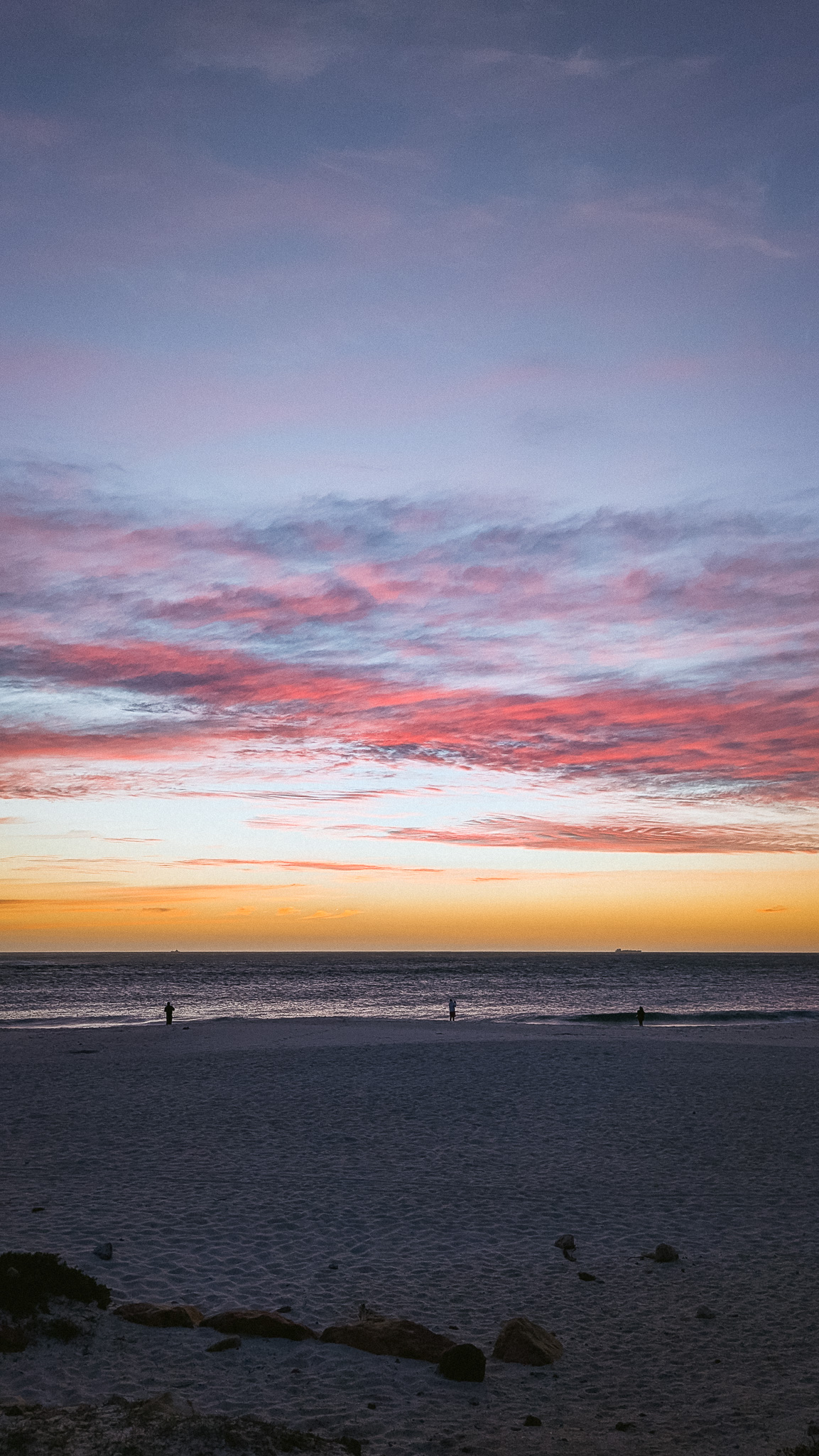 - Passer le week-end entre cours de surf pour João à Muizenberg, anniversaire d’un ami, visite de Blouberg (juste pour la vue) et du waterfront avec un coucher de soleil et un cold plunge pour finir le week-end à Saunders Rock avec Matt (mon ancien coloc).