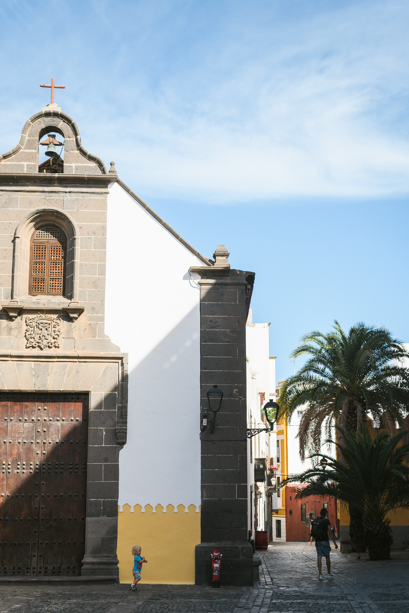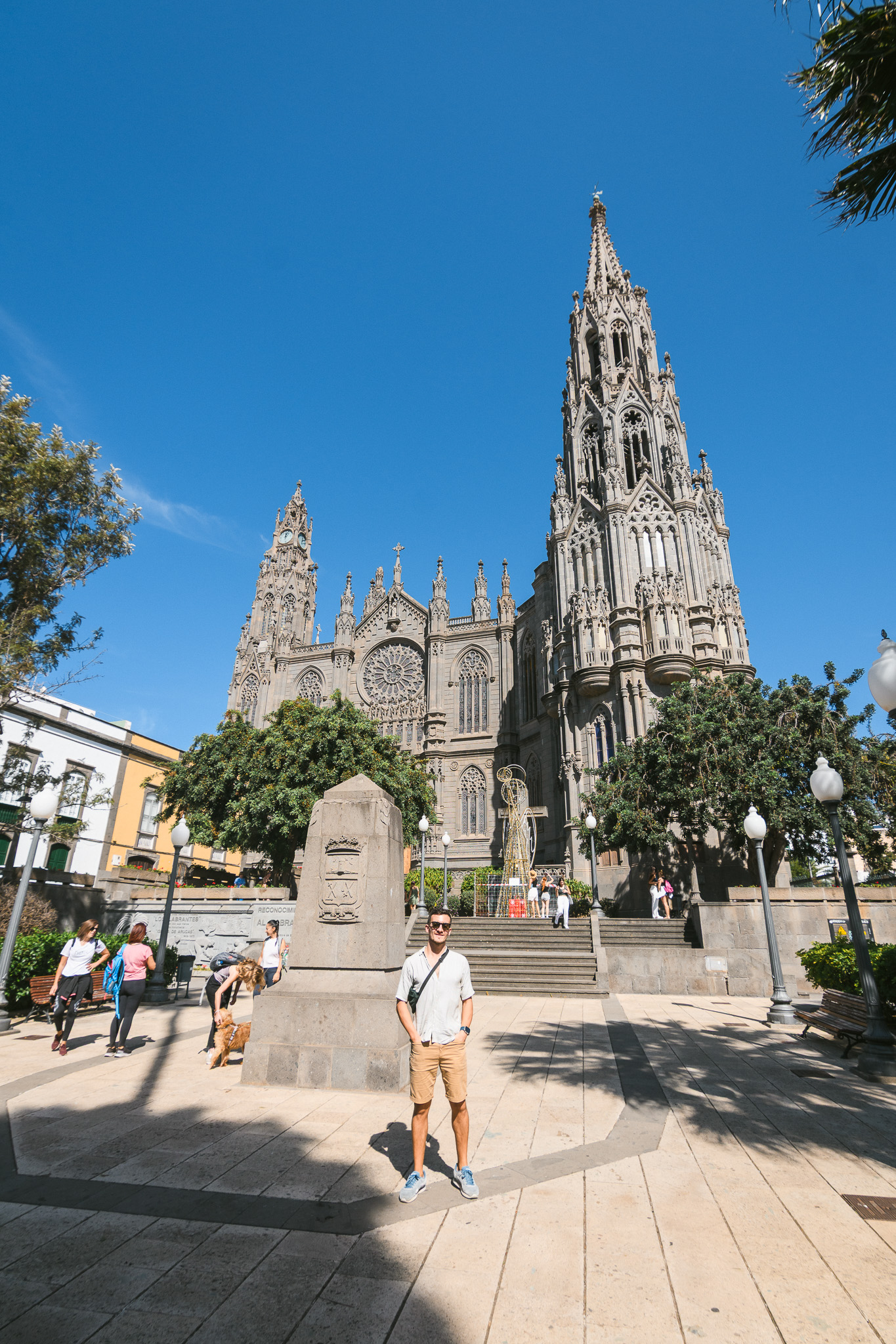 On voulait s’arrêter dans la ville de Teror, connue pour sa basilique et son marché du dimanche mais ce dernier attire toute l’île on dirait et il est impossible de se parquer. On décide de continuer notre route jusque Arucas pour voir l’église de San Juan Bautista. Joujou dit que c’est l’église de son cousin espagnol et pose fièrement devant. On se balade également dans la ville qui est très mignonne.