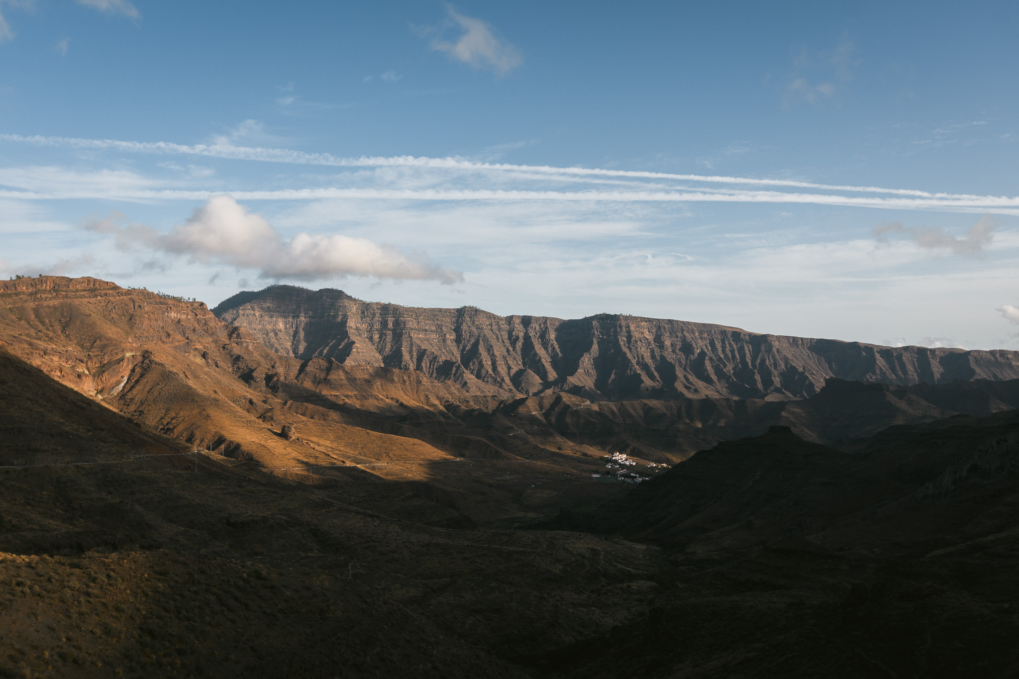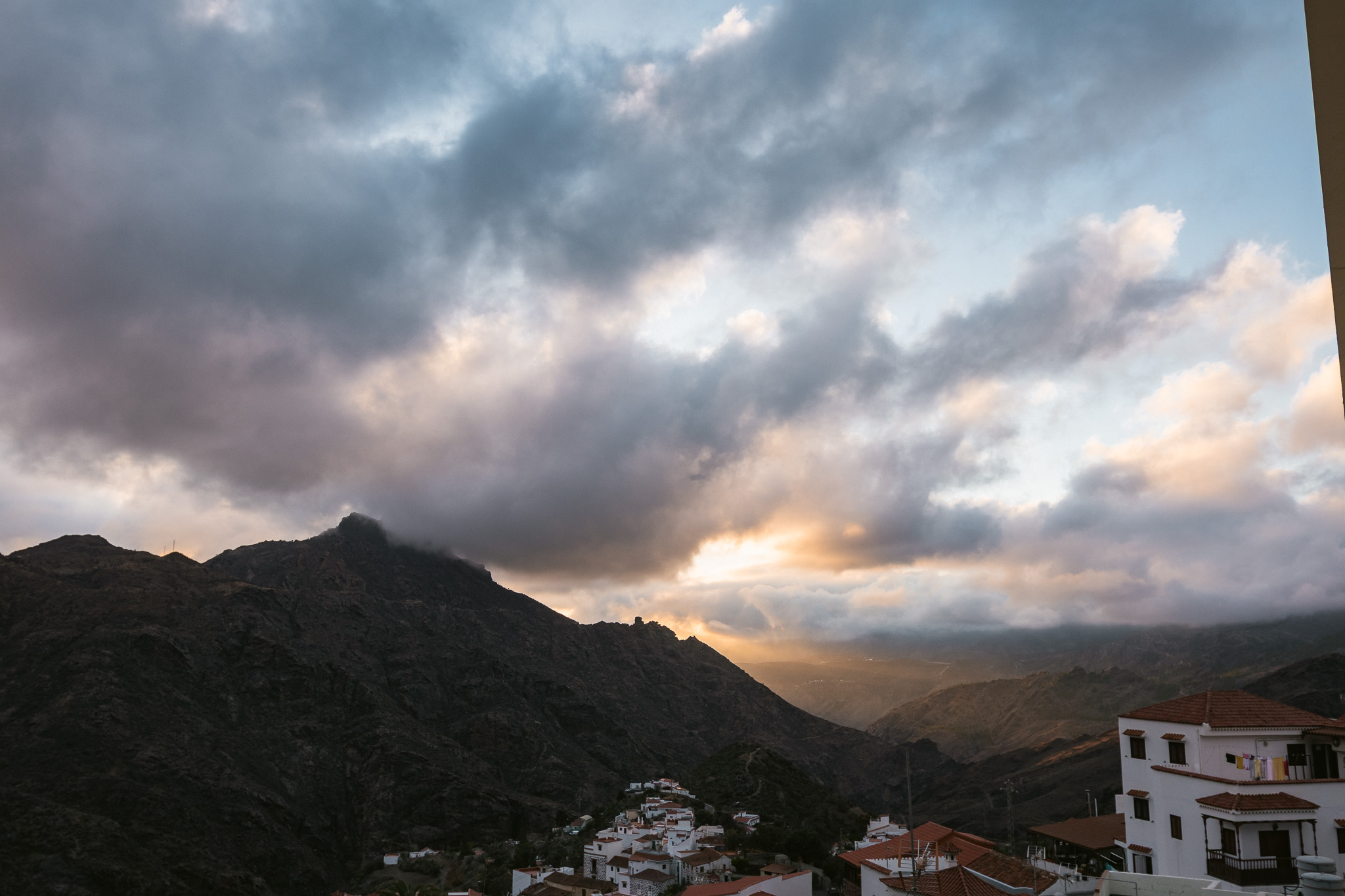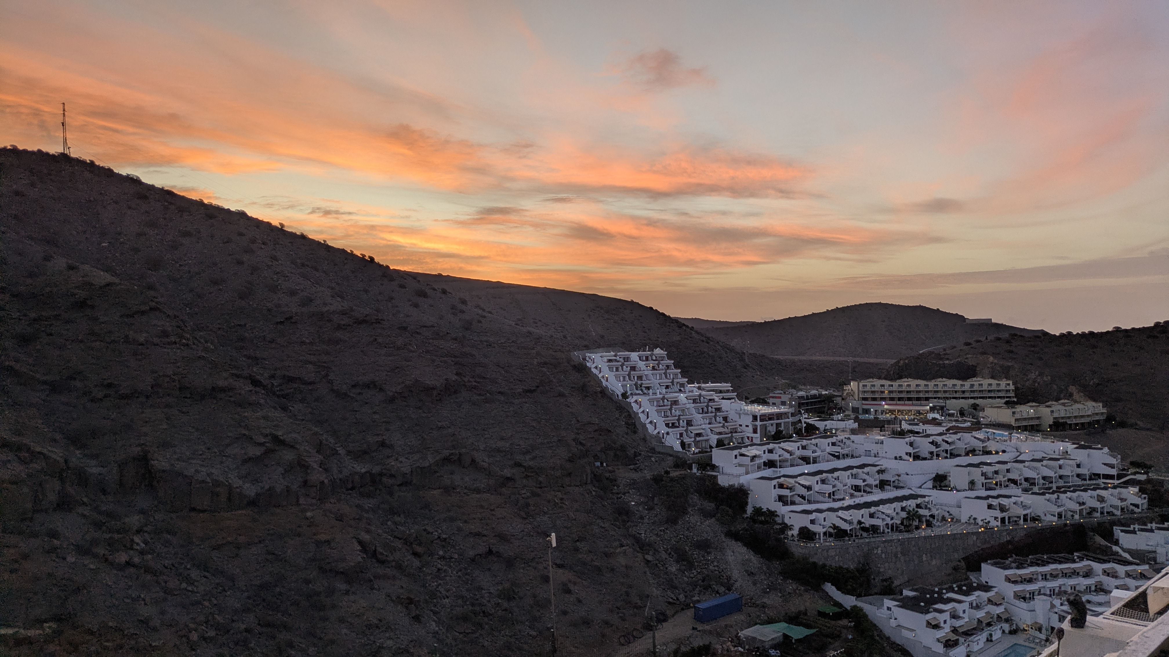 Vendredi, c’est le dernier jour avant les vacances ! On a de la chance, on peut check out plus tard et check in de l’autre côté plus tôt, donc tout se met bien. Entre les deux, on roule 1h40 jusqu’à notre logement, situé à Tejeda, au centre de l’île dans les montagnes. De nouveau la route est magnifique et les arrêts photos sont nombreux. Mais depuis notre logement on a encore une plus belle vue, parfaite pour notre dernière après midi de travail. Le soir, on chasse le coucher de soleil mais on a pas choisi le meilleur point de vue. On finira par faire un petit tour dans le village de Tejeda avant de rentrer cuisiner chez nous.