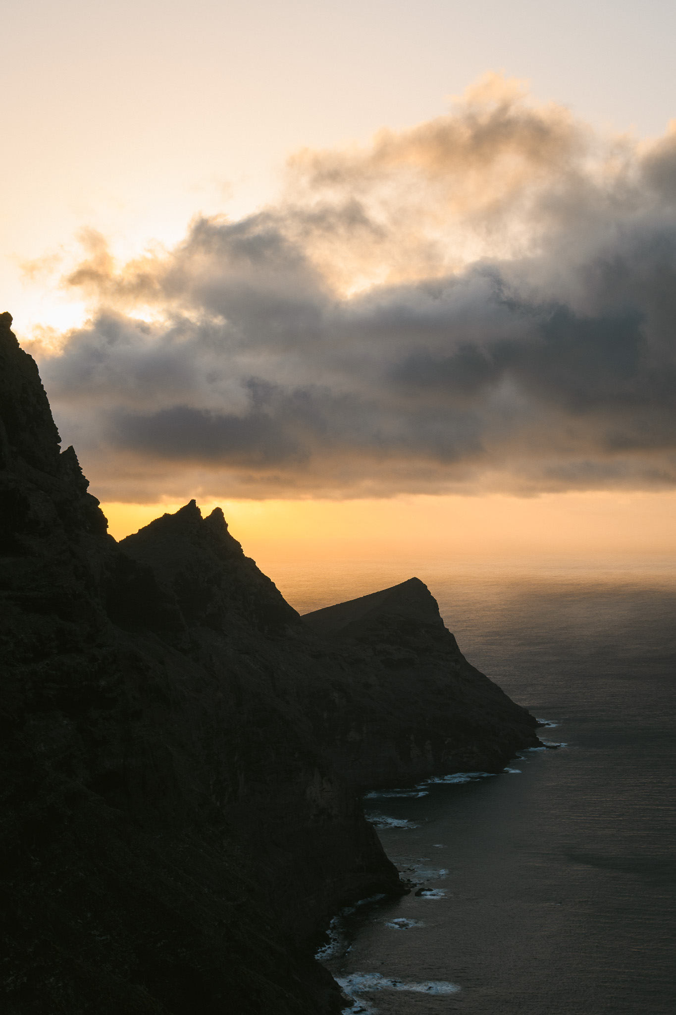 Mardi, on roule jusqu’au sud ouest de l’île et là on apprécie tout de suite plus l’île. On roule sur des routes qui longent les montagnes et on veut s’arrêter dès qu’on peut pour prendre des photos. Mais on ne peut pas trop traîner ou on va louper le coucher de soleil au Mirador del Balcon. Là le soleil se couche juste derrière les falaises, le spectacle est pas mal! On rentre dans le noir jusqu’à notre appart.
