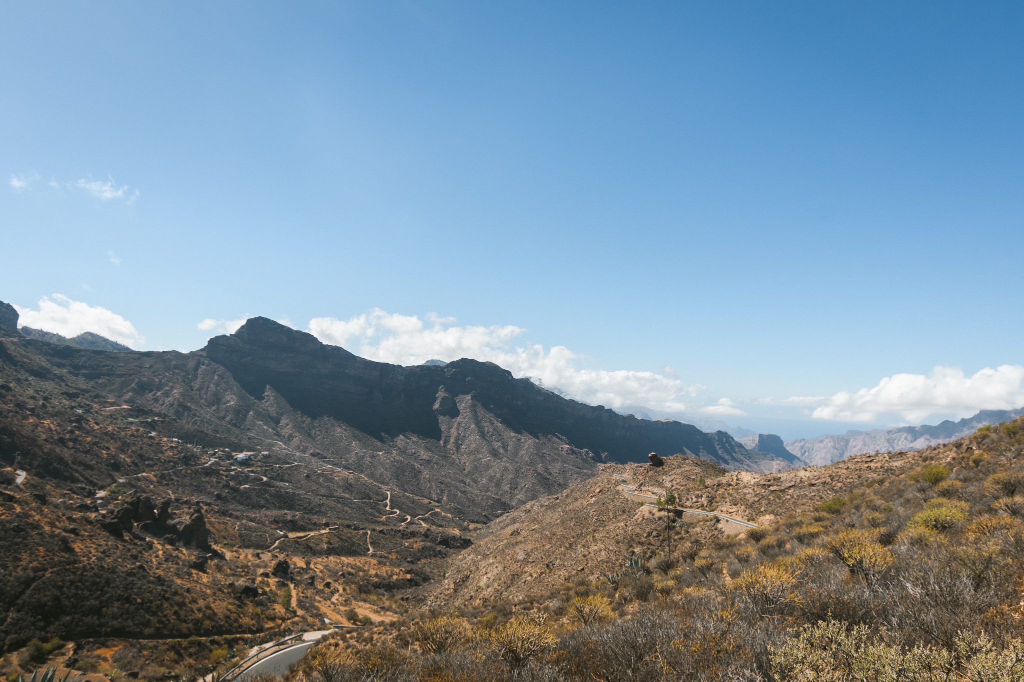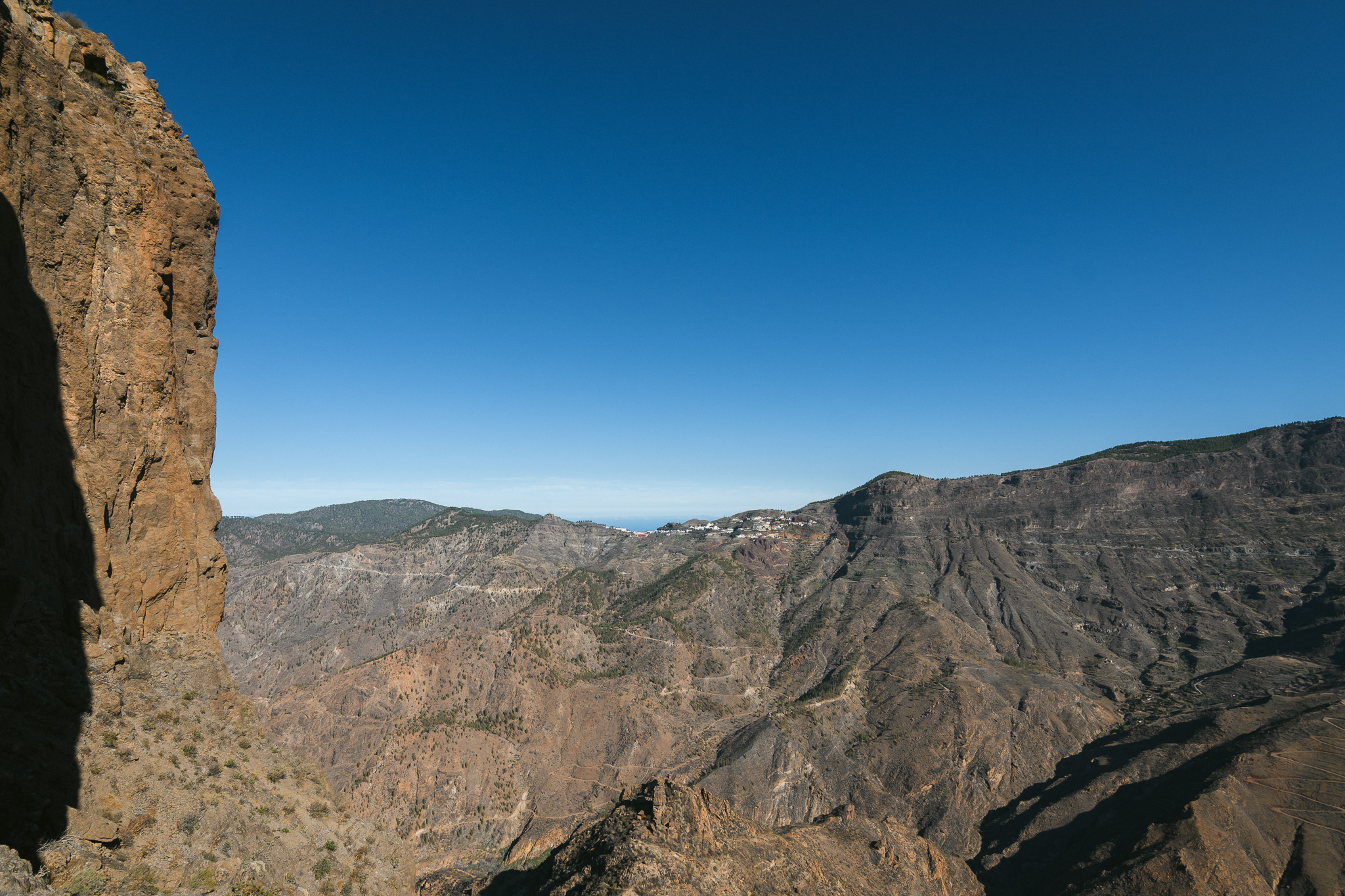 On se remet en route et on fait le tour des miradors. C’est chaque fois la même vue mais avec un angle différent, mais toujours aussi beau. On voit la mer de tous les côtés de l’île! On se rend compte qu’il nous reste pas mal de temps avant le créneau que nous avons réservé pour grimper le Roque Nublo donc on rentre à Tejeda profiter de la piscine de notre appart.