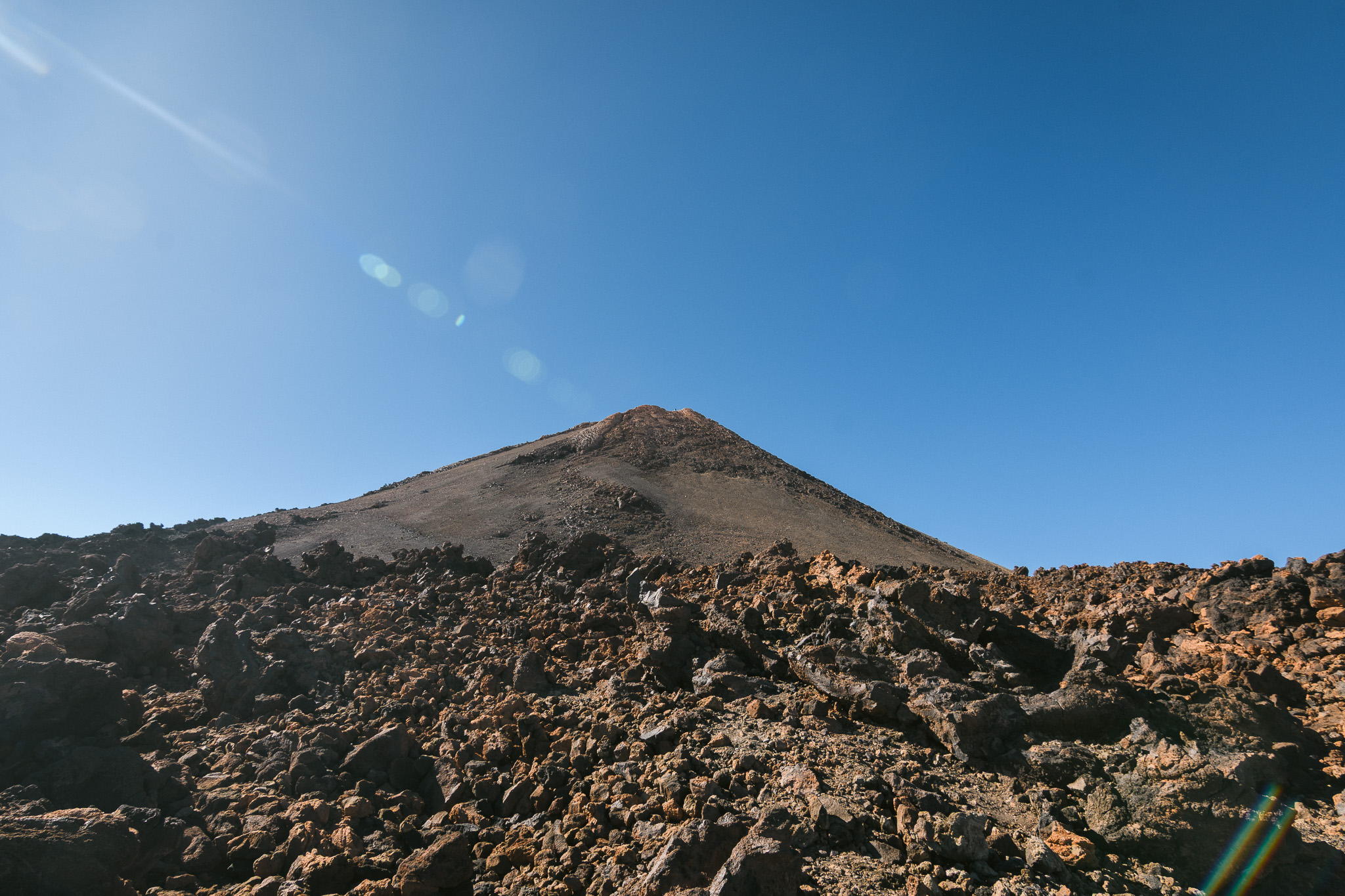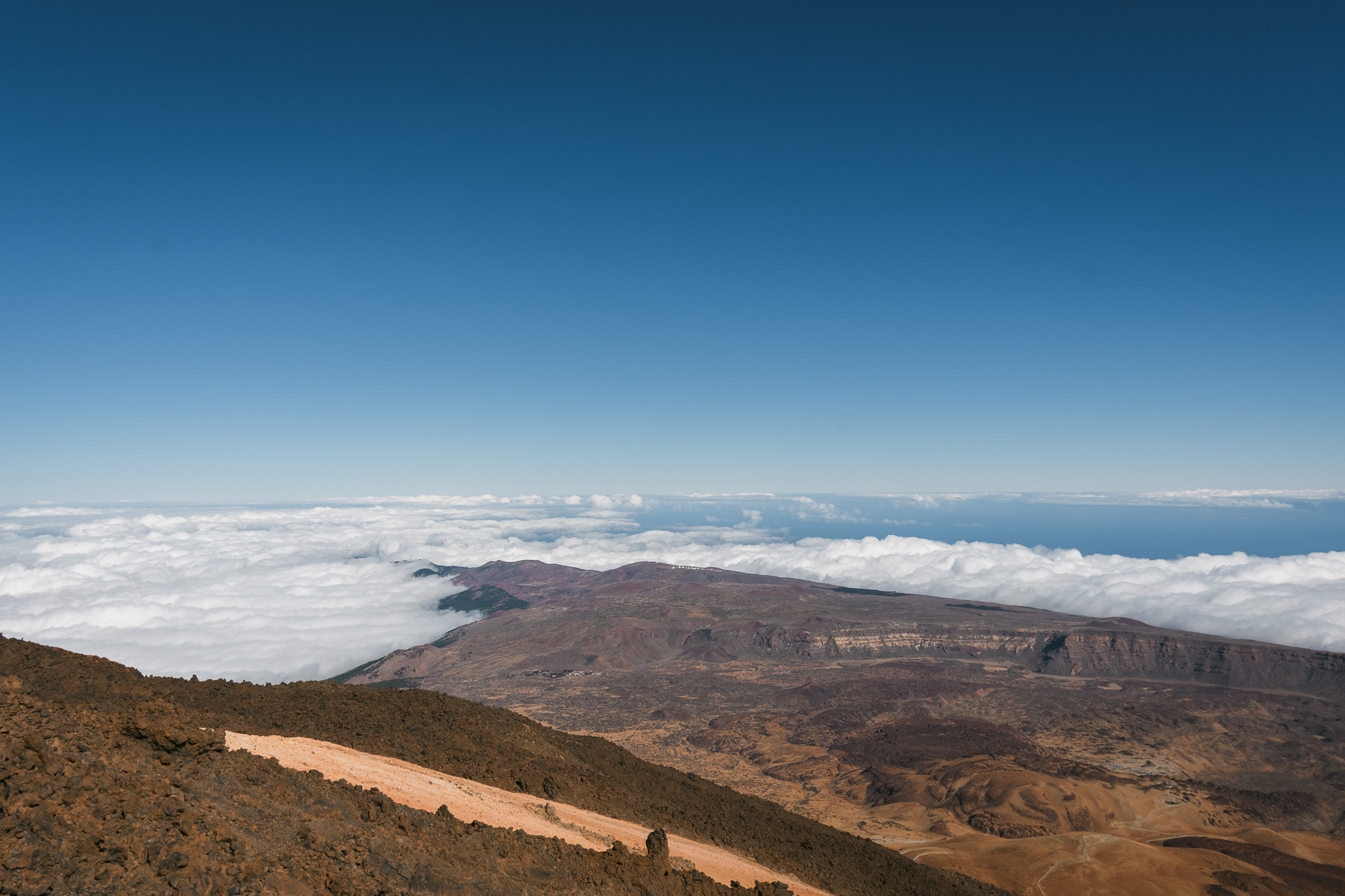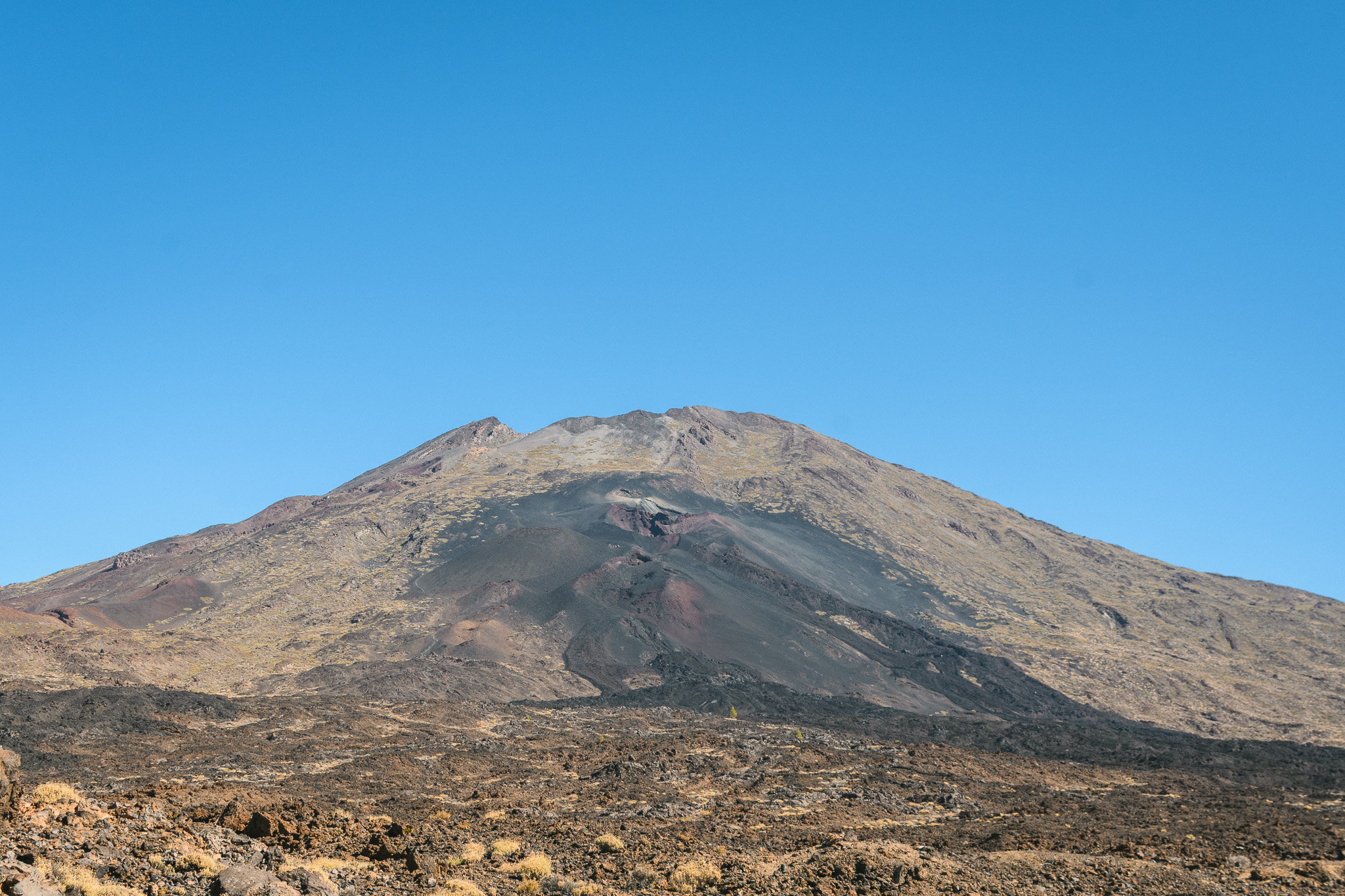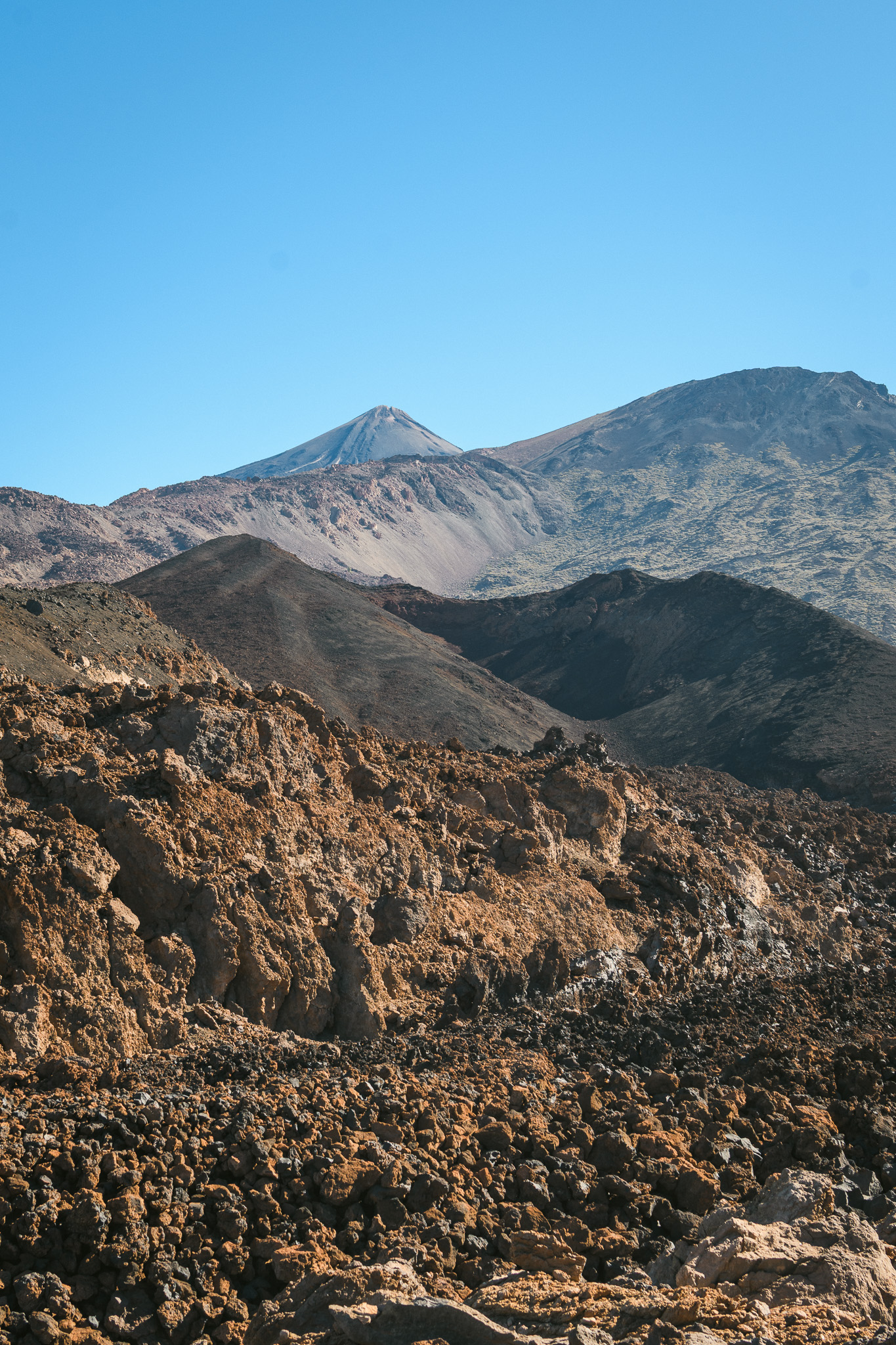 Jeudi, on part pour une grande journée! On commence par rouler vers l’ouest de l’île pour arriver dans le parc national du Teide par un autre chemin. On grimpe et on voit déjà l’île voisine: la Gomera. On s’arrête au Mirador de Samara et de là on fait un balade d’1h30 à travers les forêts de pins et les coulées de lave, toujours avec une vue sur le Teide et son voisin : le pico Viejo.