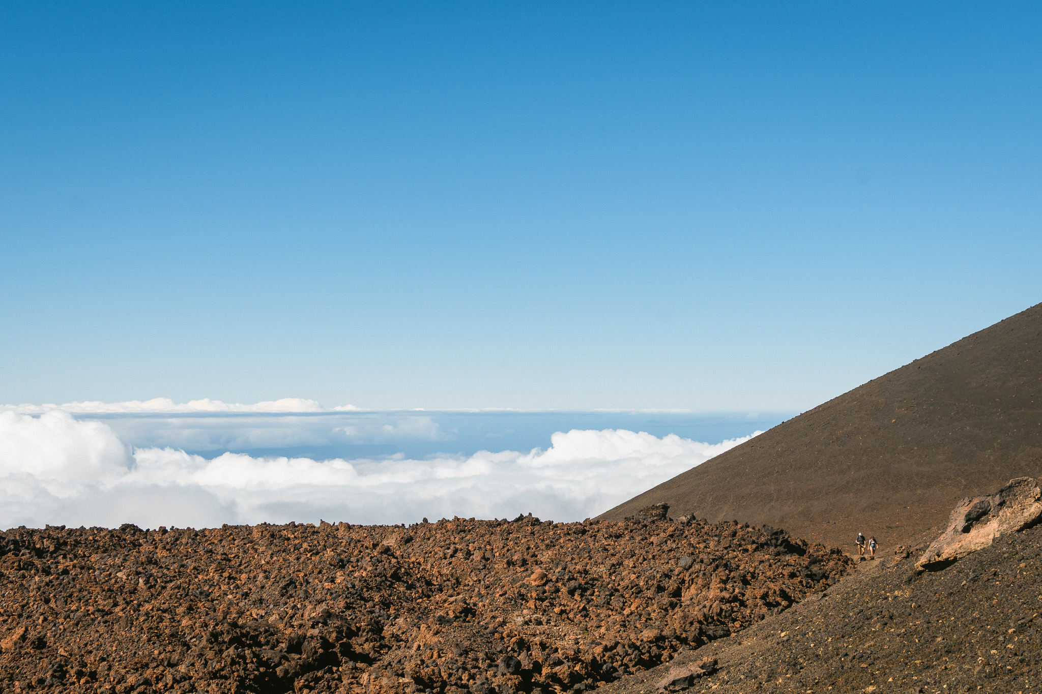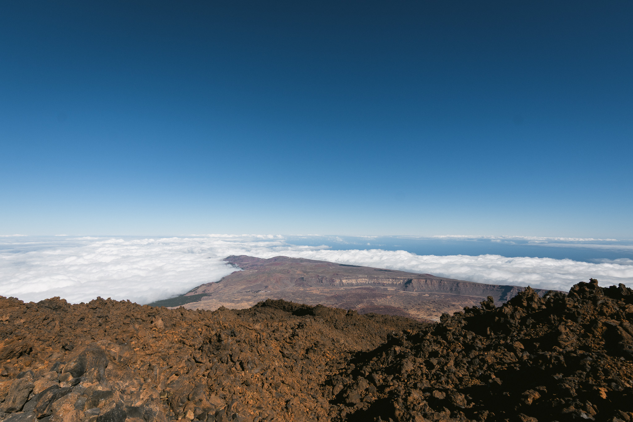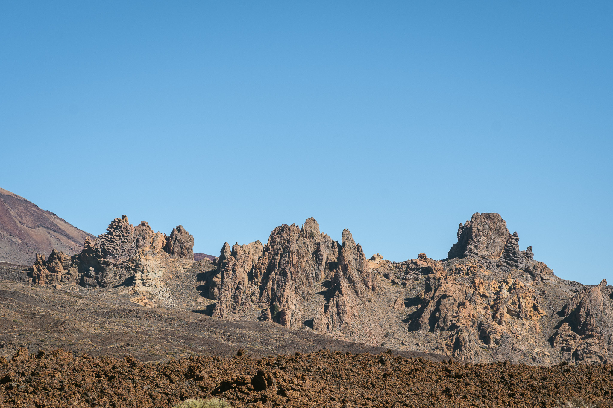 De retour, on roule vers une autre balade : Roque Garcia, non sans faire plusieurs arrêts. On se croirait sur Mars et c’est d’ailleurs ici qu’ils ont testé un robot pour aller sur la planête rouge ! La balade de Roque Garcia nous fait passer par de grosses formations rocheuses assez imposantes. On lunch avec vue sur le Teide.