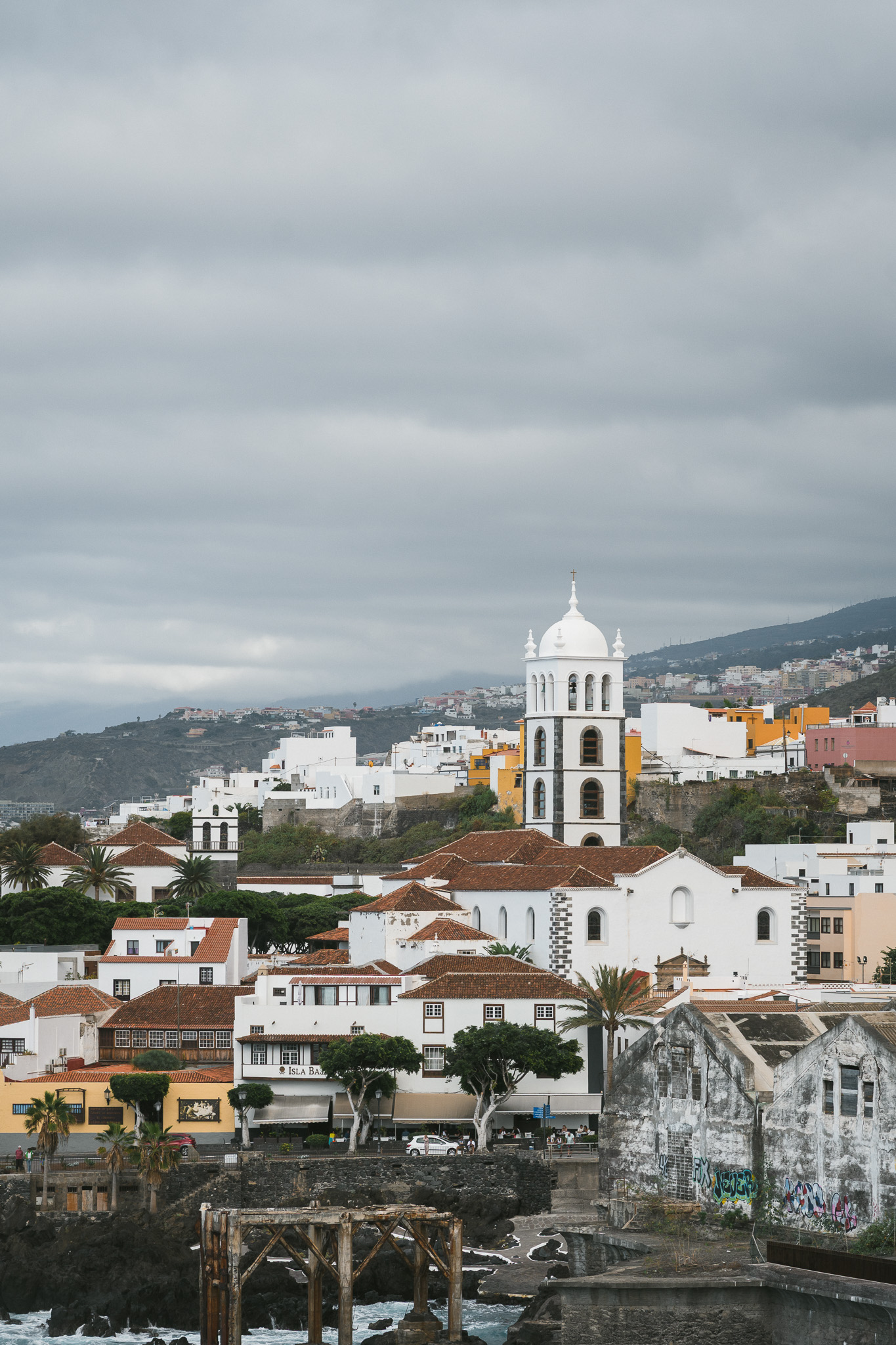 On descend donc vers Orotava, charmante petite ville où on lunch. On visite ensuite Puerto de la Cruz, un peu moins jolie que l’on pensait. On arrive ensuite dans notre logement et vu que les nuages sont arrivés (et même un peu de pluie), on décide d’y rester, pas de mission coucher du soleil ce soir.