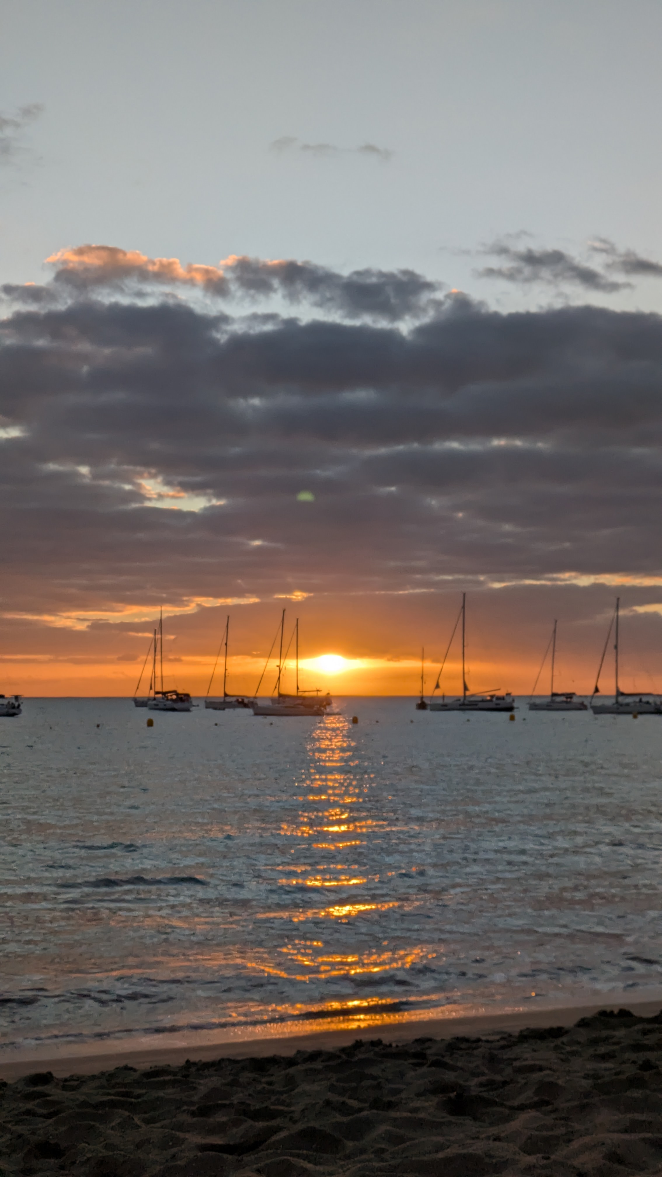 Dimanche, Joujou continue sa formation de plongée pendant que je farniente à l’appart. Lundi, Joujou termine son Open Water et réussit son test ! Je comptais plonger de base mais il y n’y a pas de groupe disponible donc je télétravaille. Le soir on va à Los Christianos, une petite ville touristique mais parfait pour le coucher du soleil. On boit un verre avant d’aller au restaurant. C’est notre dernier soir.
